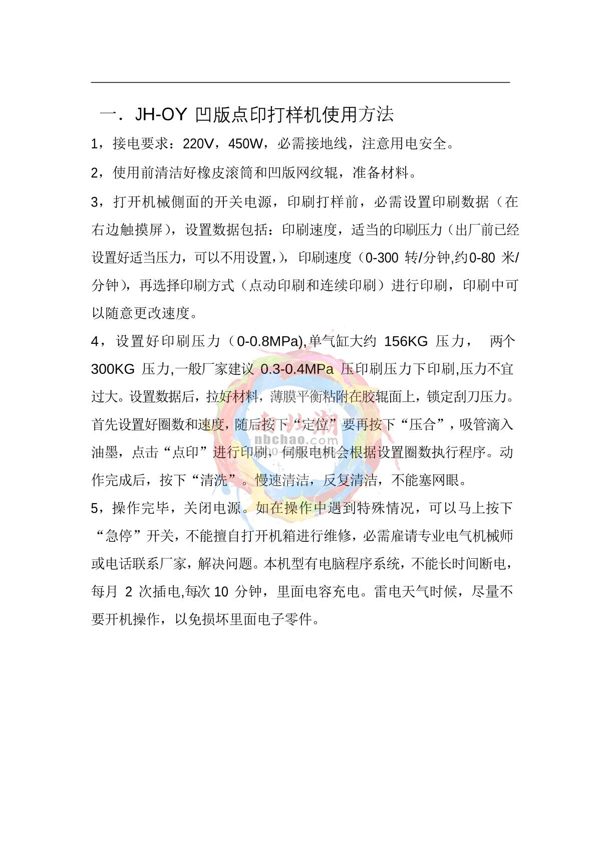 JingHuaYiQi LD-OY Gravure Ink Proofer Manual,OI