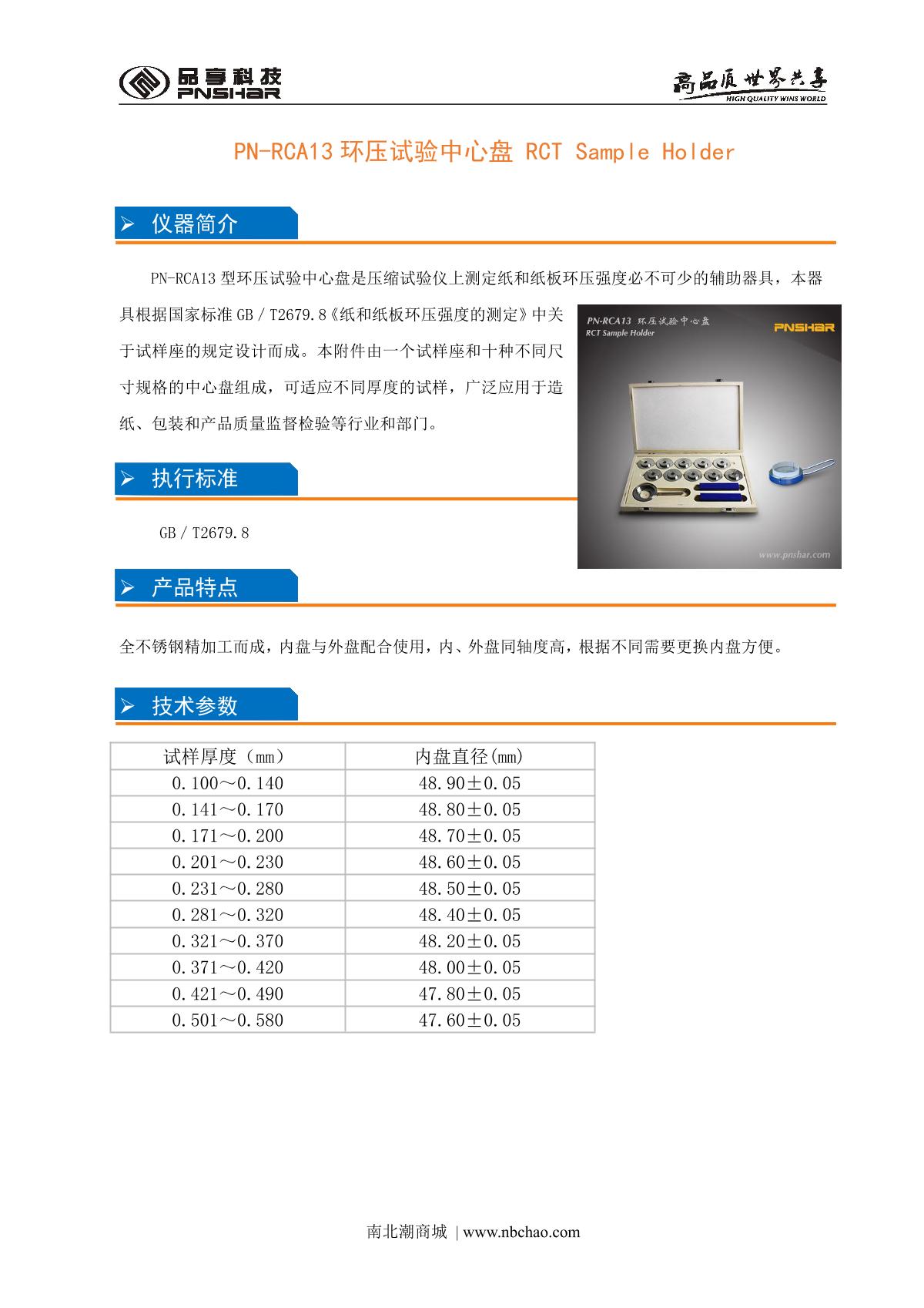 PNshar PN-RCA13 Ring pressure test center plate brochure