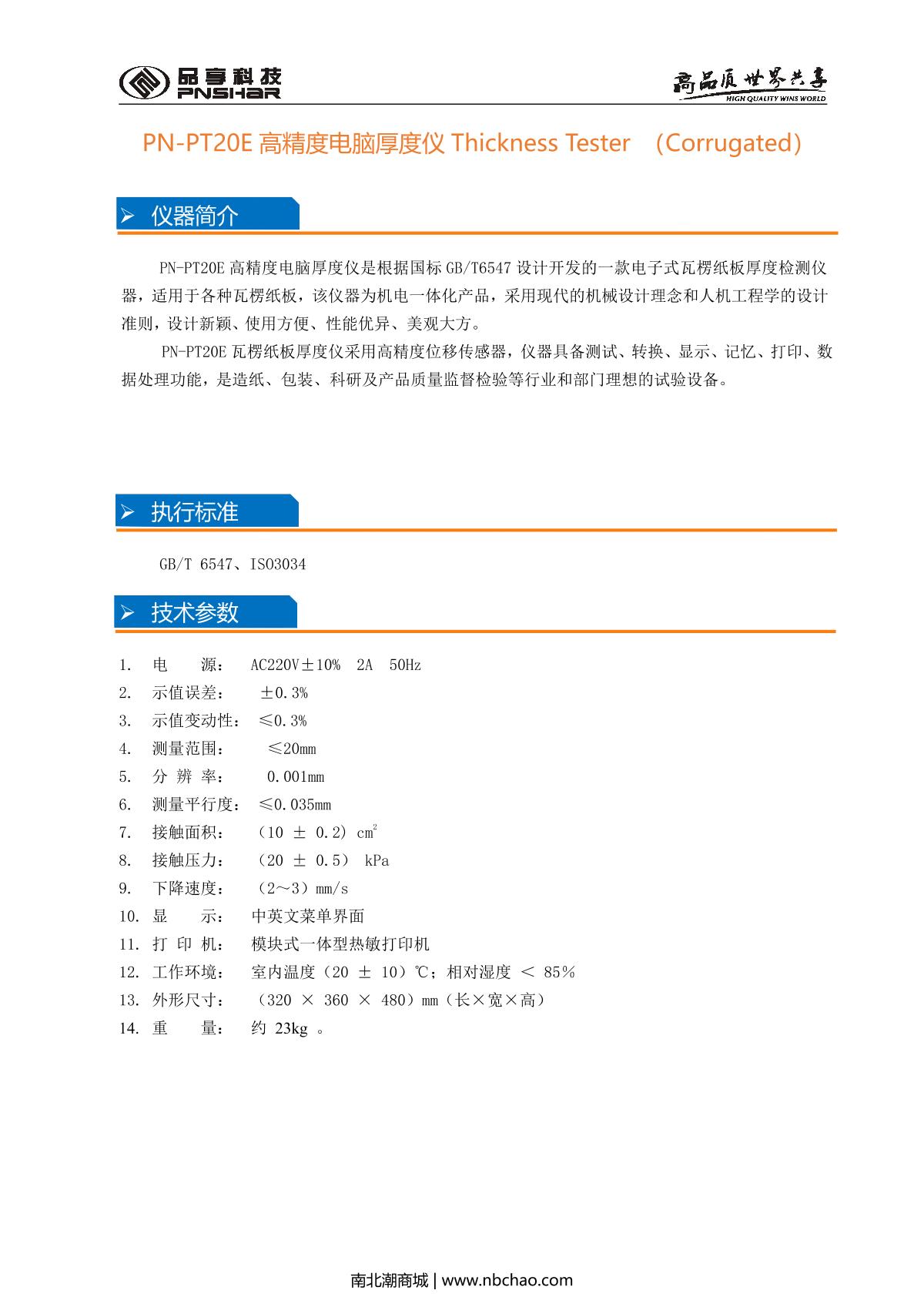 PNshar PN-PT20E High-precision Cardboard thickness Tester brochure
