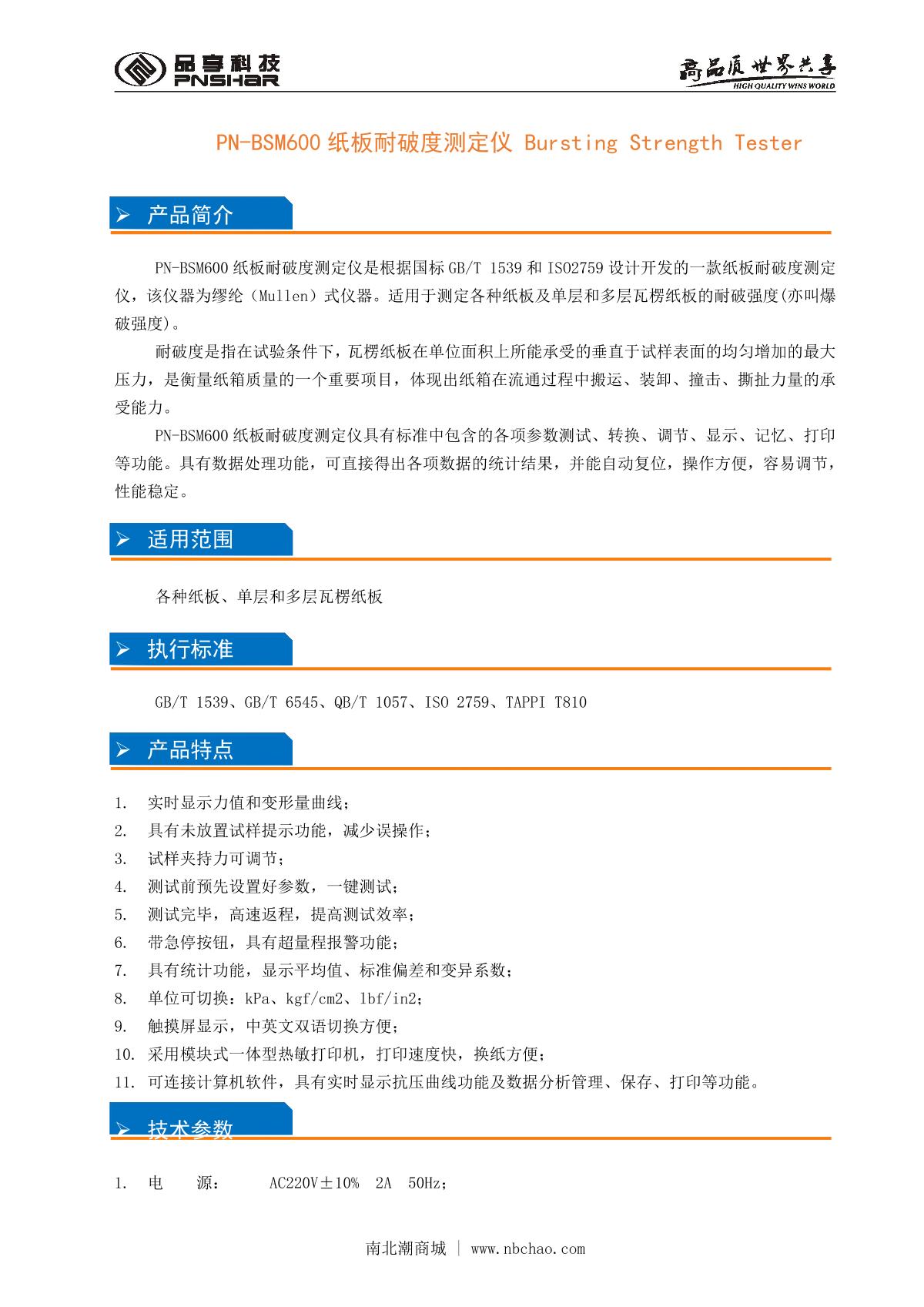 PNshar PN-BSM600 Cardboard Burst Strength Tester brochure