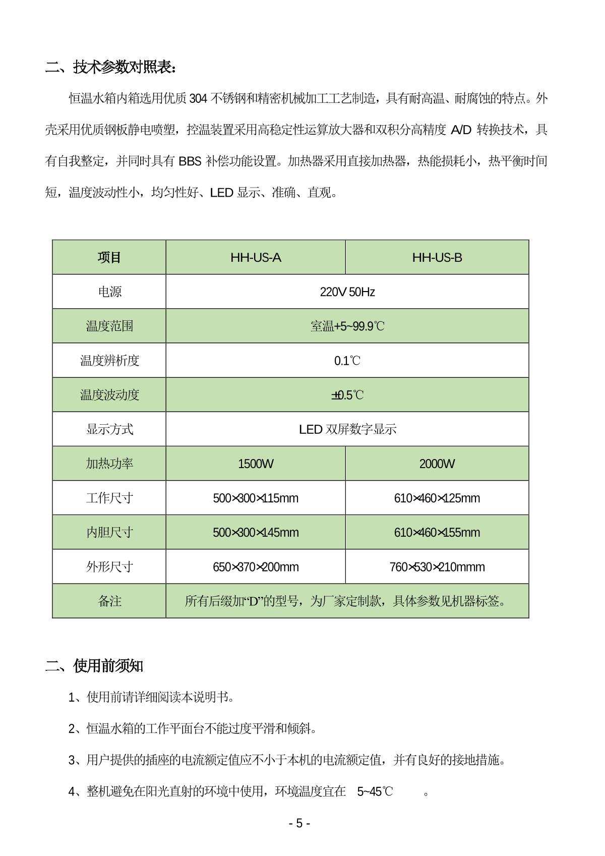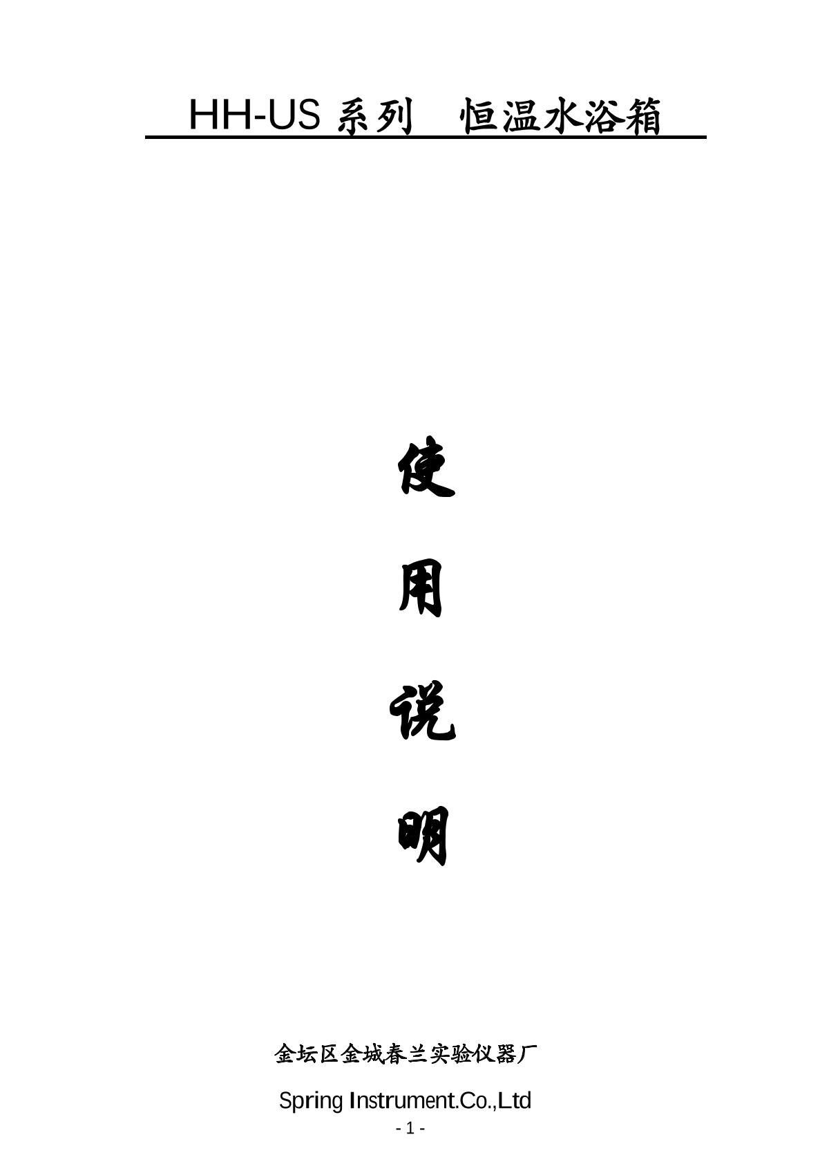 Spring HH-US-A Thermostatic Water Bath box Manual,OI