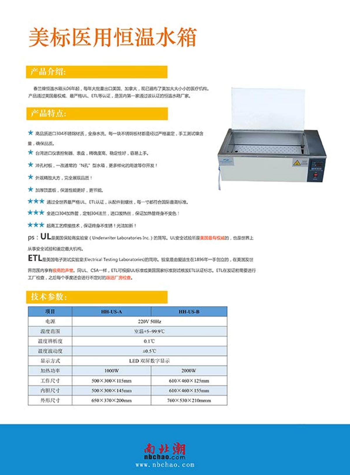 Spring HH-US-A Thermostatic Water Bath box brochure
