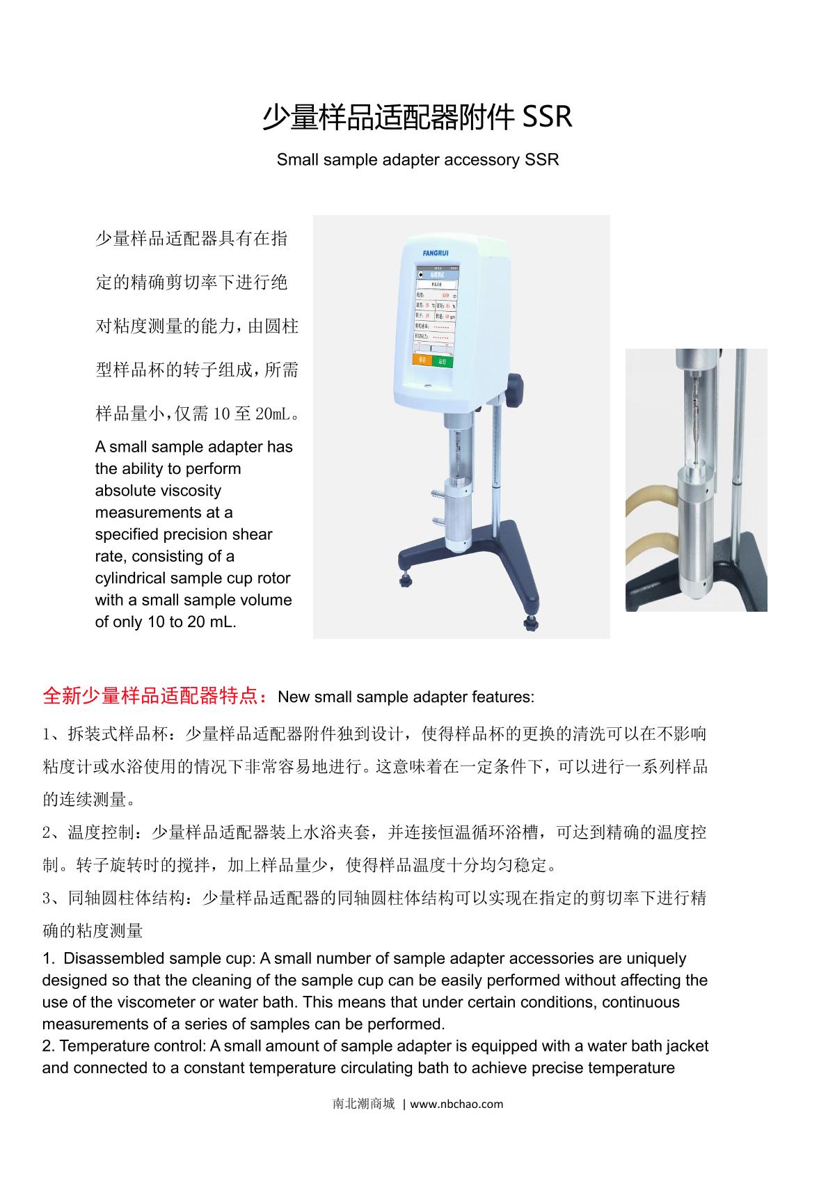 FANGRUI RV-SSR Digital Viscometer for small amounts of samplesBacklit LCD, digital display5~2000000mPa·s21 #, 27 #, 28 #, 29 #(0 #optional)¥5910.0SE -