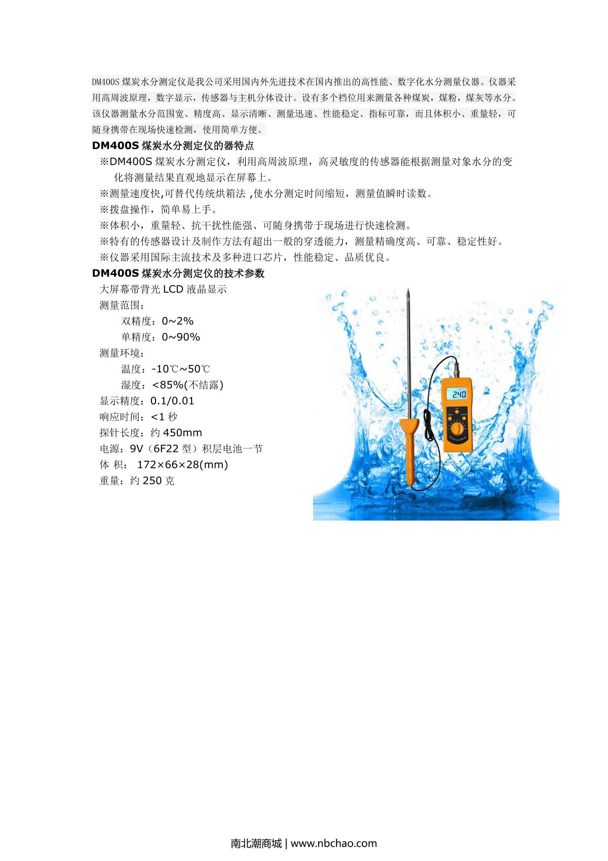 TSINGTAO TOKY DM400S Coal Moisture meter Coal, pulverized coal, slag Moisture detectionLarge screen LCD digital display with backlightDouble Accuracy: 0~2% Single Accuracy: 0~90%0.1/0.01¥1340.0SE