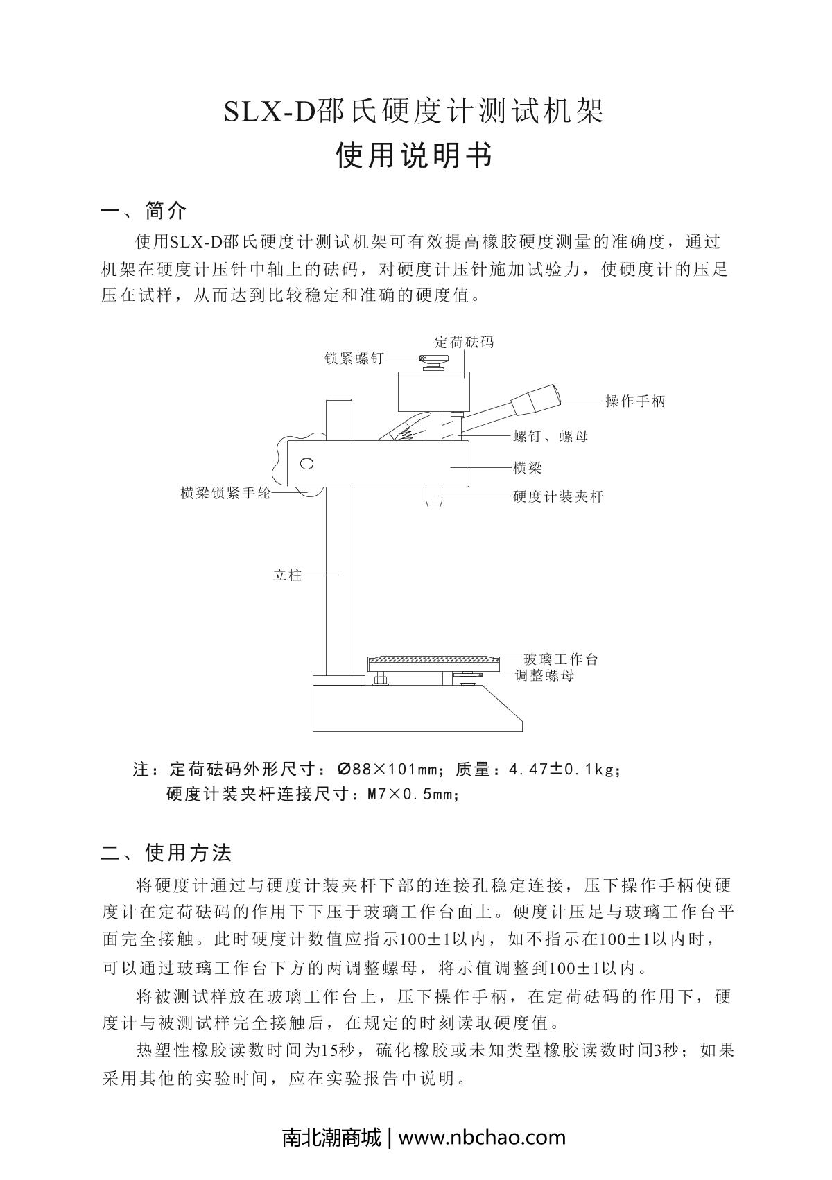 SUNDOO SLX-D Test bench (D type rubber Hardness Gauge) Manual,OI