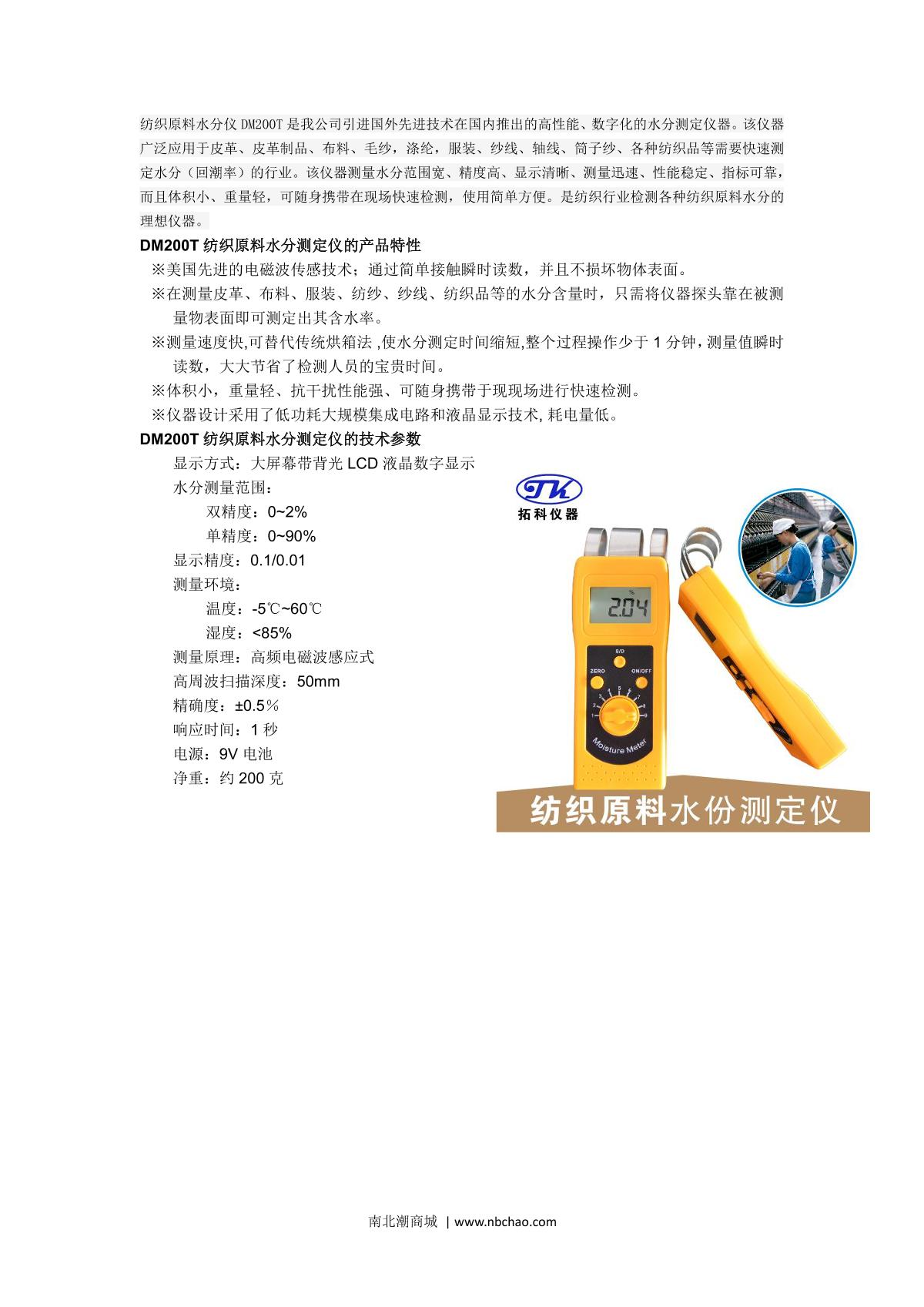 TSINGTAO TOKY DM200T Spinning & weaving Moisture Meter brochure