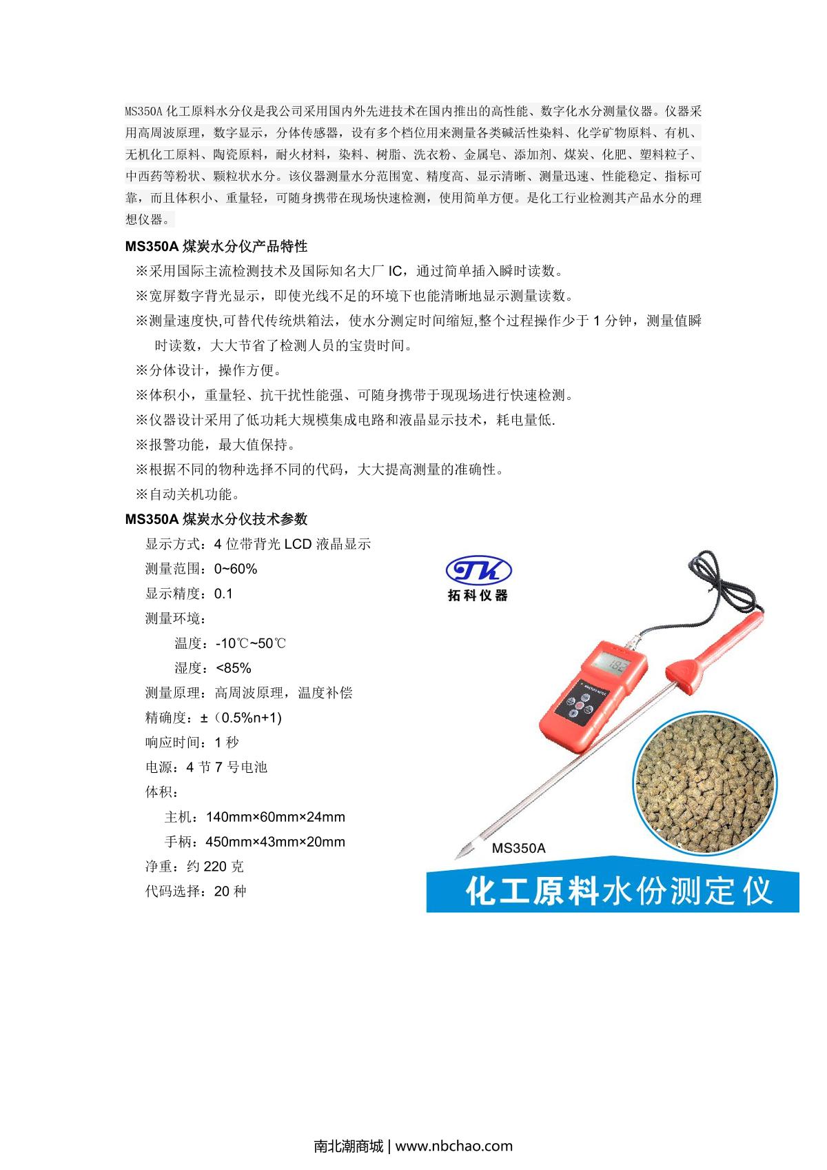 TSINGTAO TOKY MS350A Chemical raw material Moisture Meter brochure