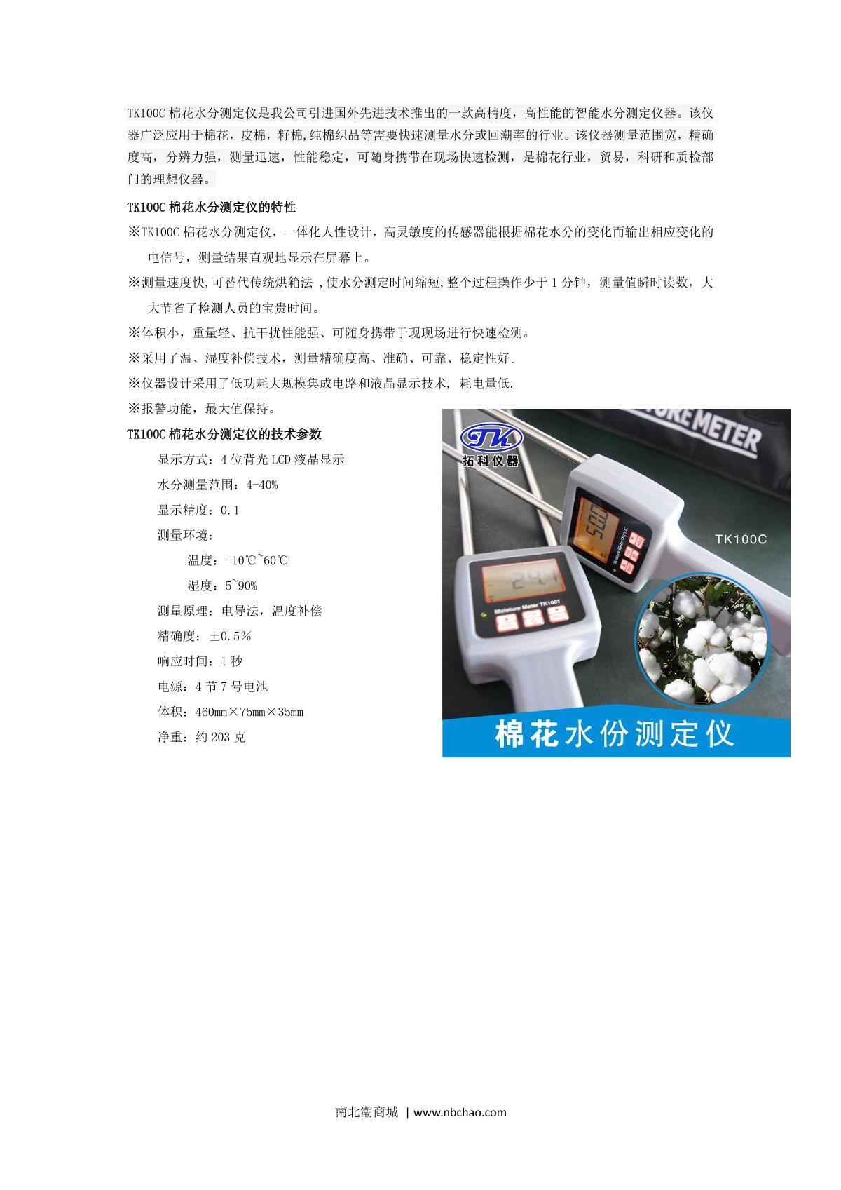 TK100C Cotton Moisture Analyzer Integrated measurement of cotton and cottonseed0.1±0.5%460*75*35mm¥440.0SE
