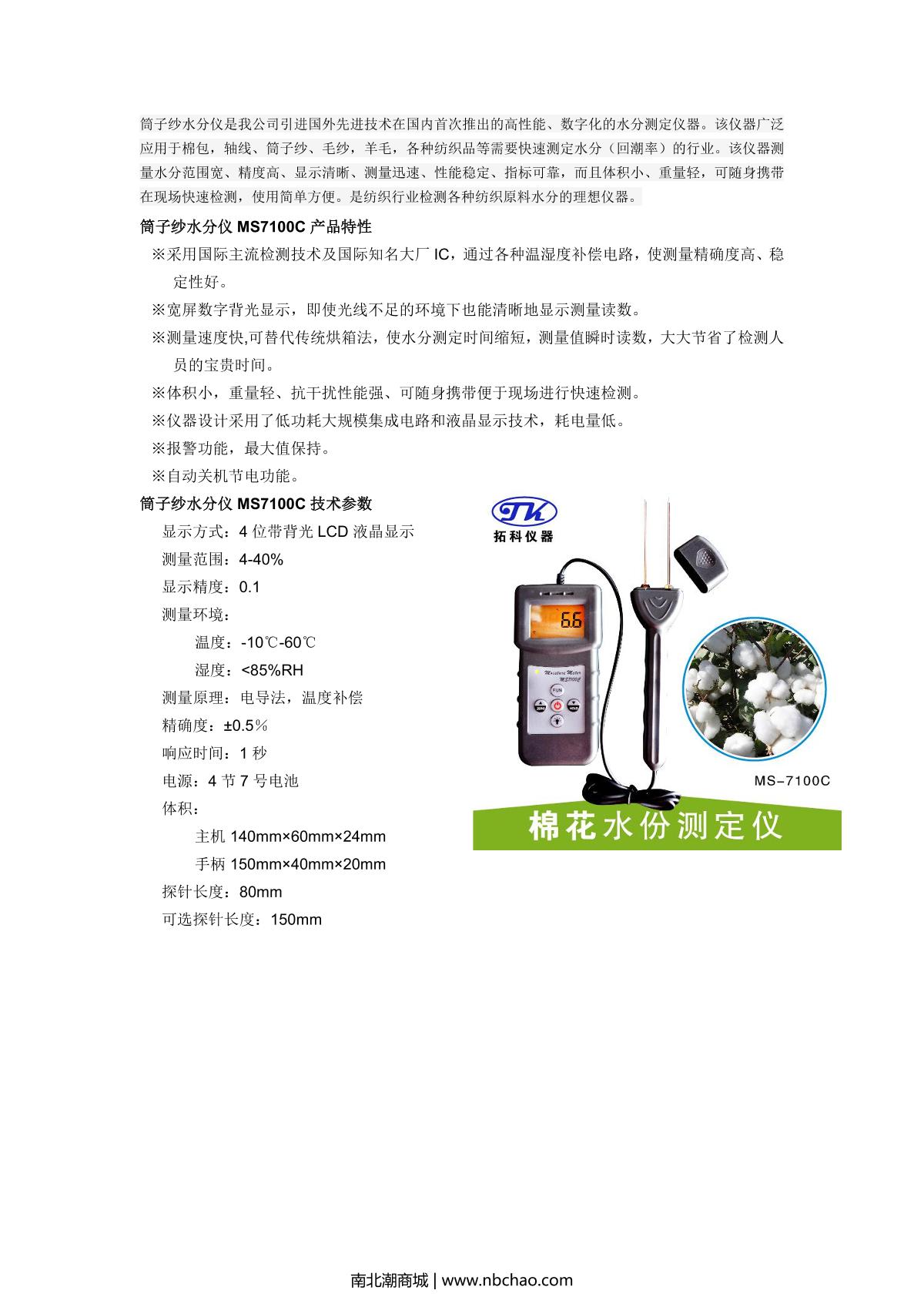 TSINGTAO TOKY MS7100C Yarn Moisture Meter brochure