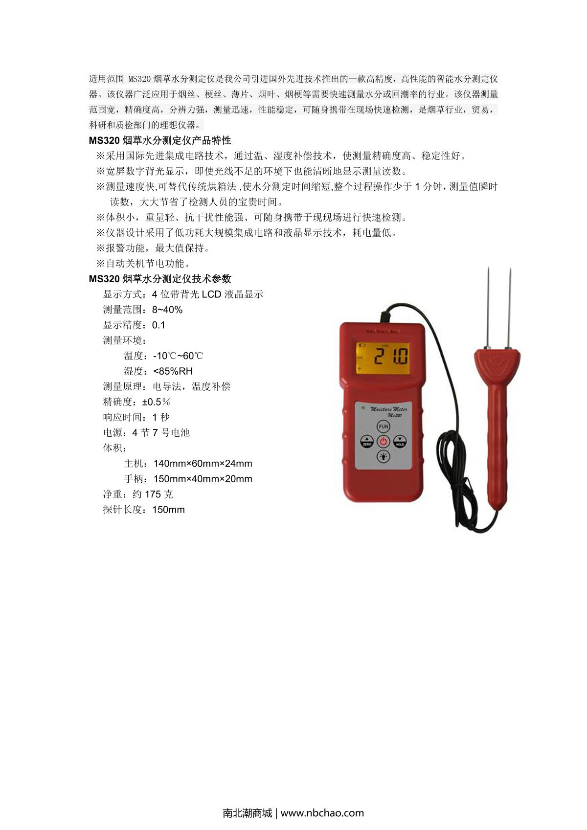 TSINGTAO TOKY MS320 Tobacco Moisture Meter, range 8~ 40%Conductivity Detector, temperature compensation8~40%0.1¥1200.0SE -