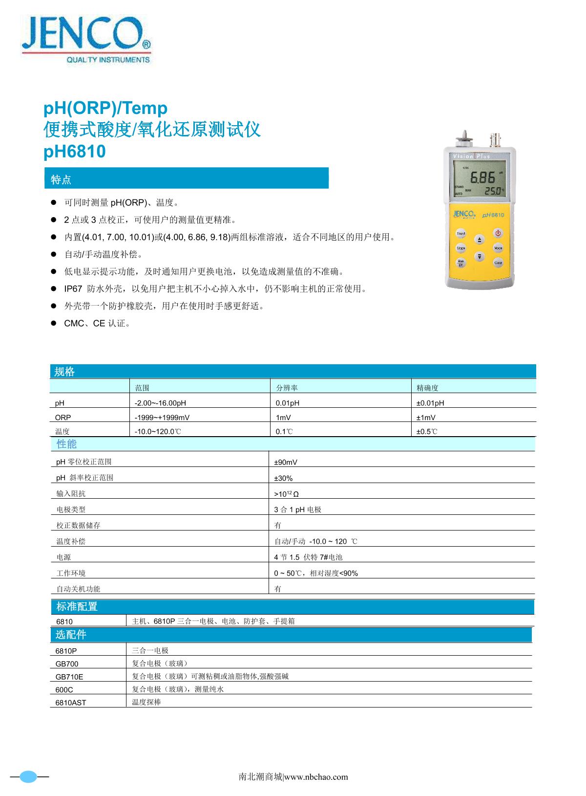 JENCO 6810 pH oxidation reduction Tester brochure
