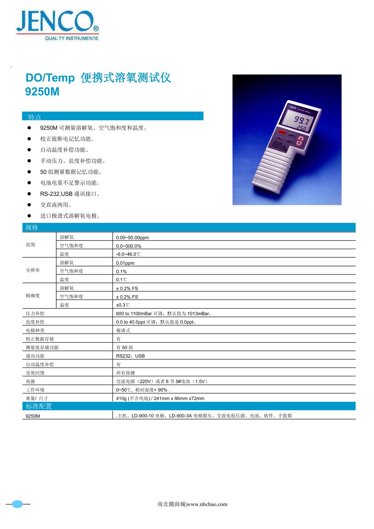 JENCO 9250M Portable Dissolved Oxygen Meter brochure
