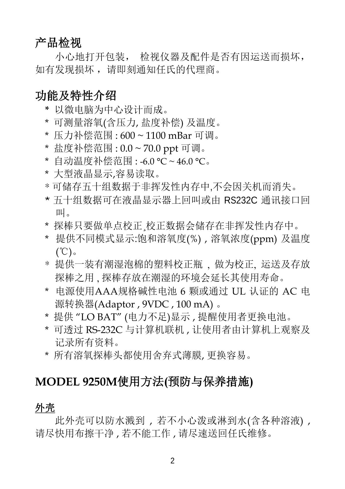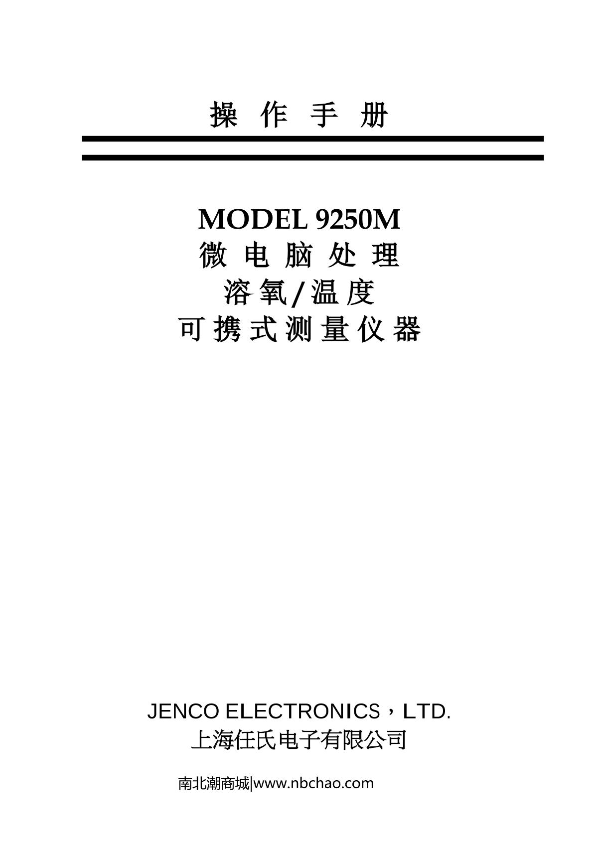 JENCO 9250M Portable Dissolved Oxygen Meter Manual,OI