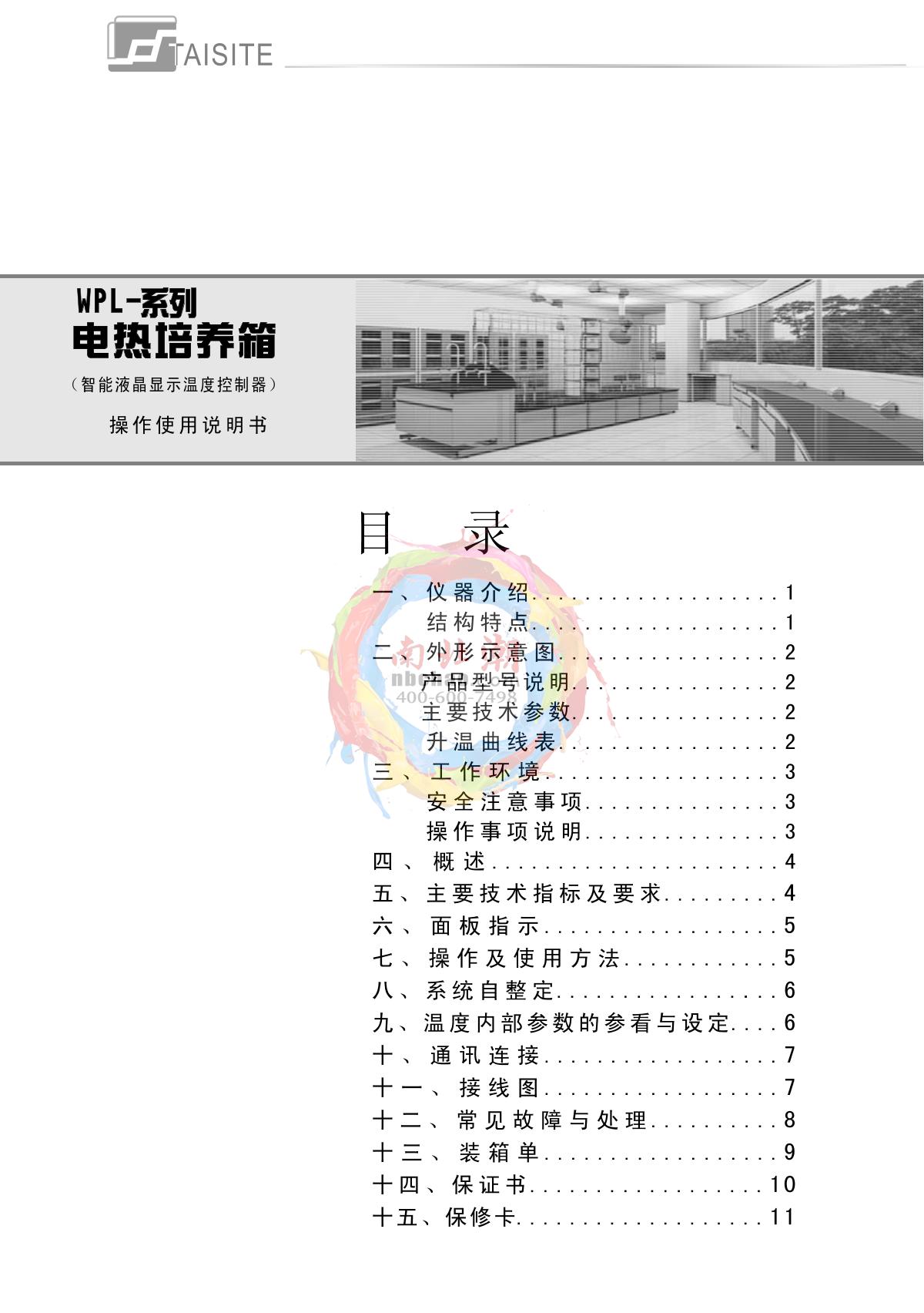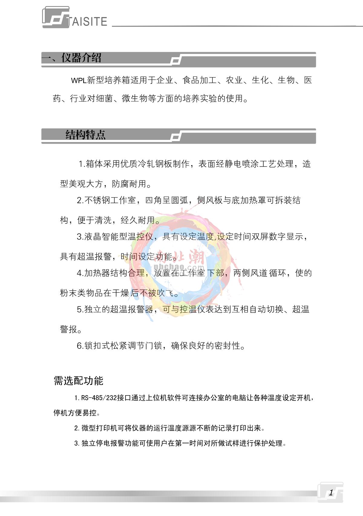 TaiSiTe WPL-230BE Electrothermal Thermostatic Incubator Manual,OI