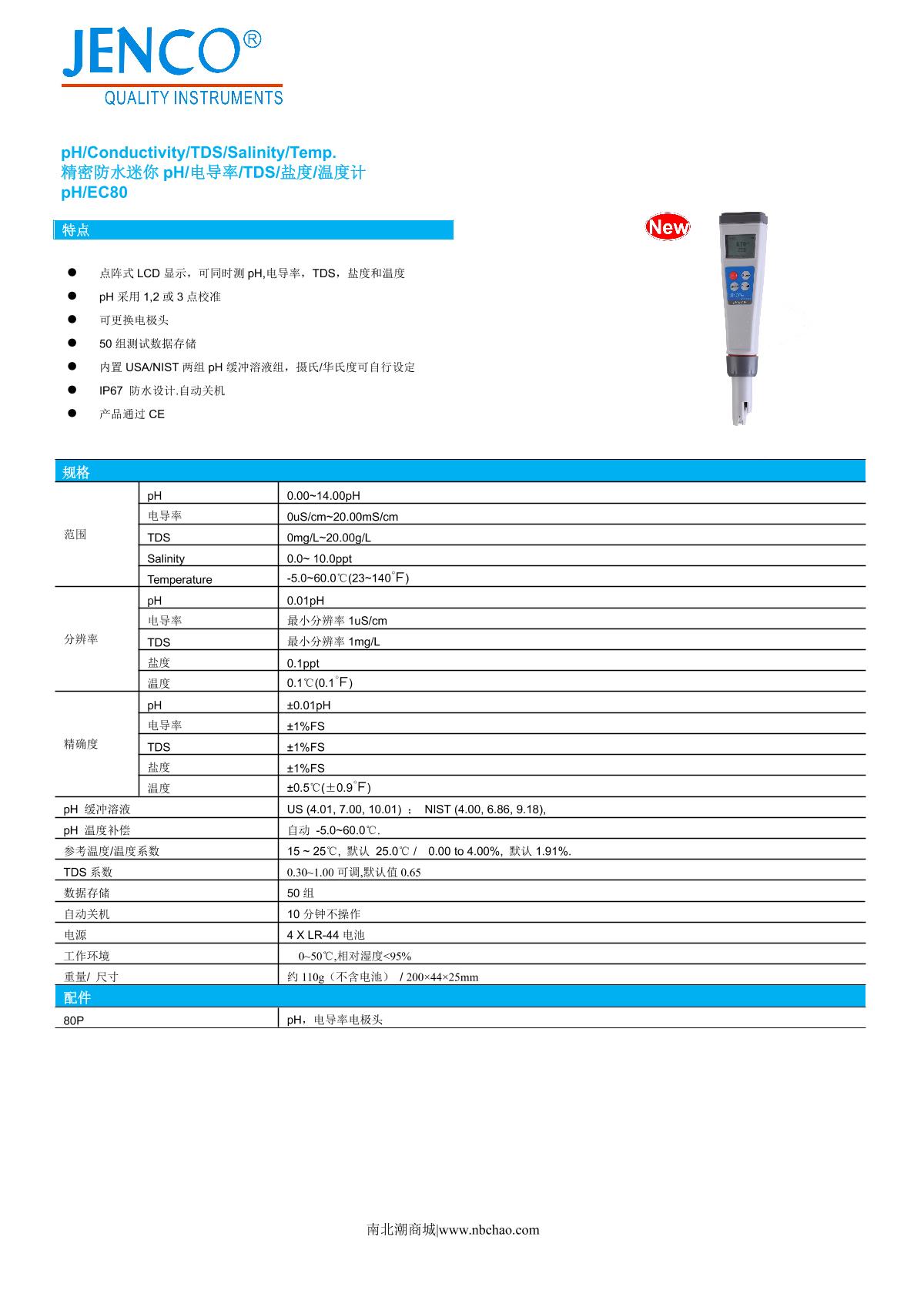 JENCO PH/EC80 Water Quality Analyzer brochure