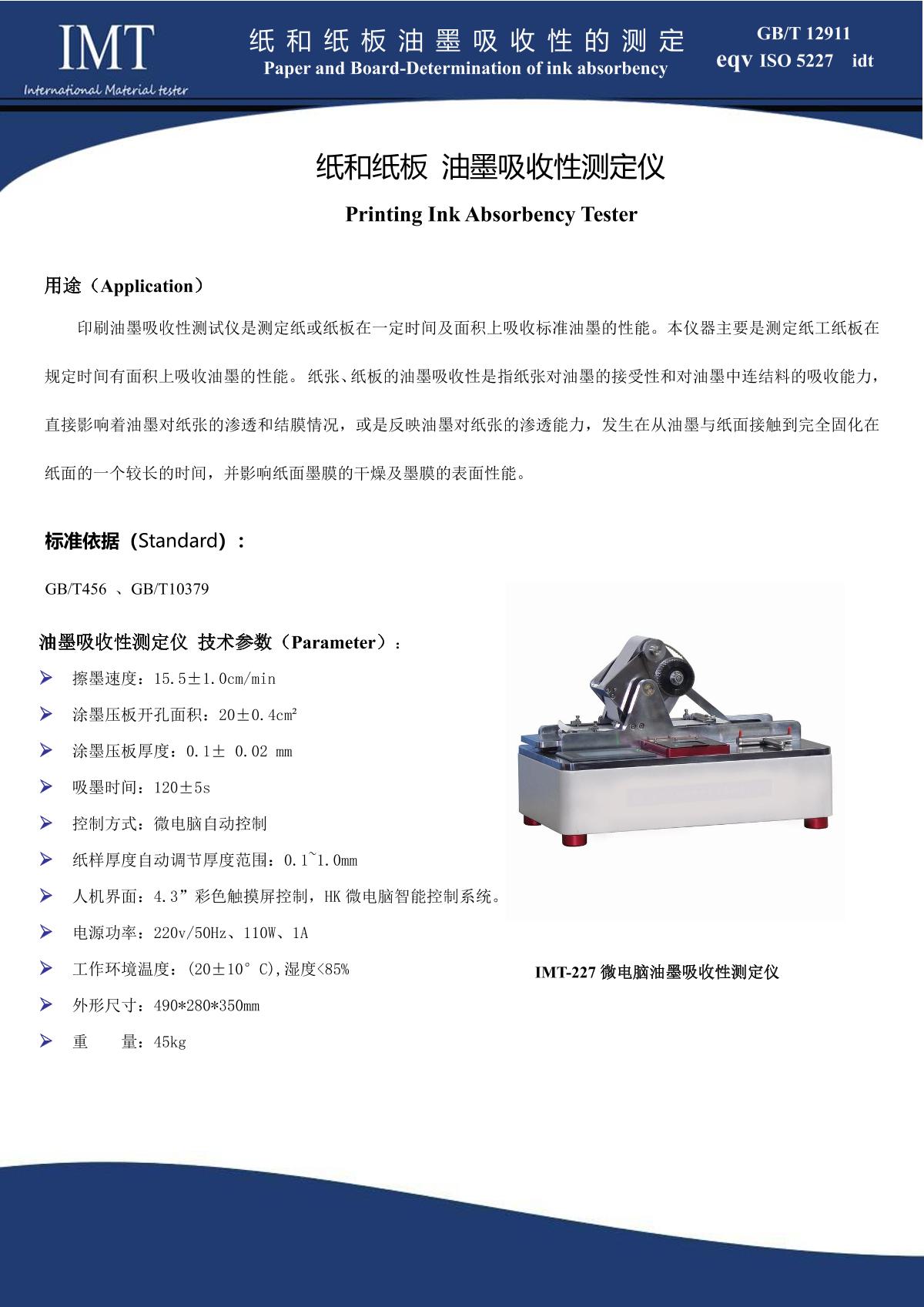 IMT IMT-227 Ink absorbency Tester brochure