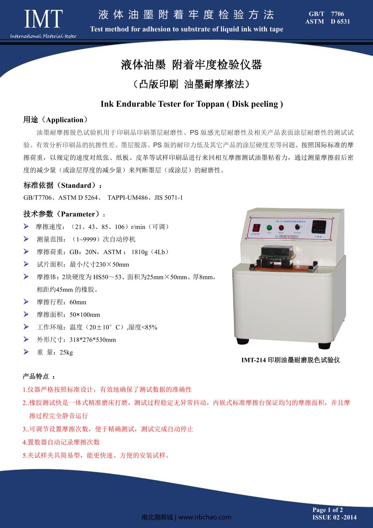 IMT IMT-214 Printing ink wear-resistant decolorization Tester brochure