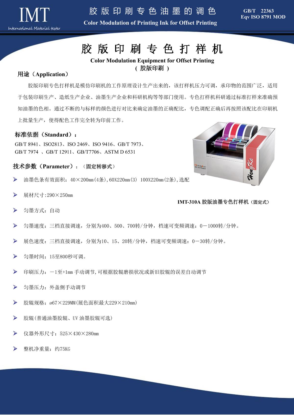 IMT-310A Offset Printing ink Spot Color Proofing Machine (Fixed)40 * 200mm (4 pieces), 60 * 220mm (3) 100 * 220mm (2 pieces), optional290×250mmautomaticSE -