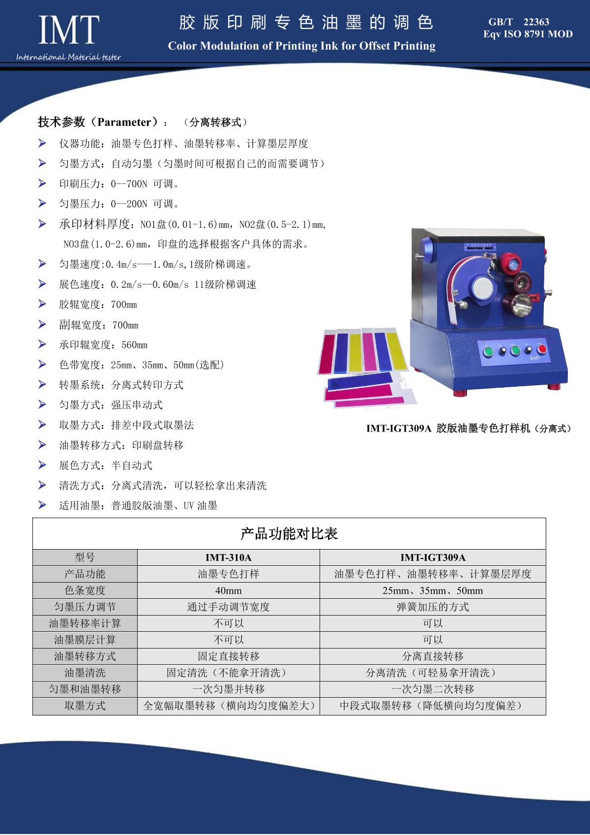 IMT IMT-IGT309A Offset plate inks Spot Color Proofer brochure