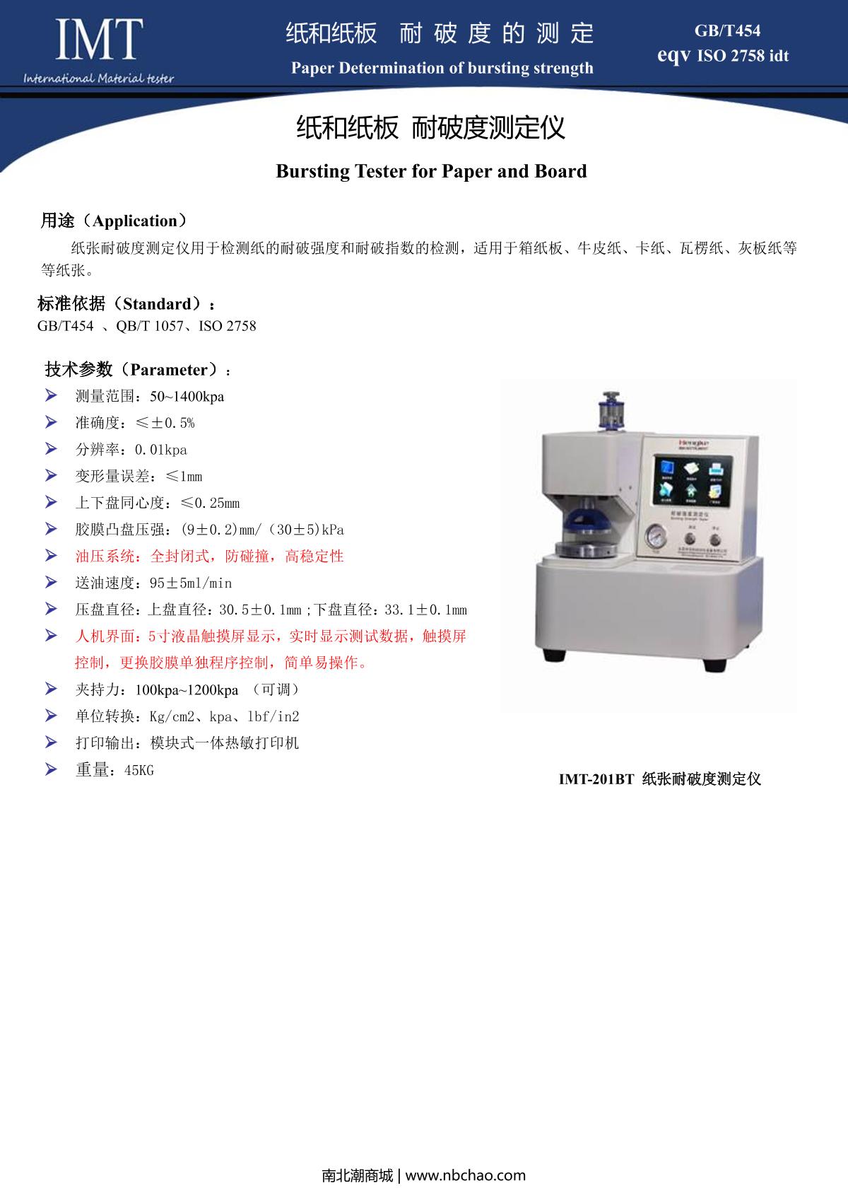 IMT IMT-201BT Paper Burst Strength Tester brochure