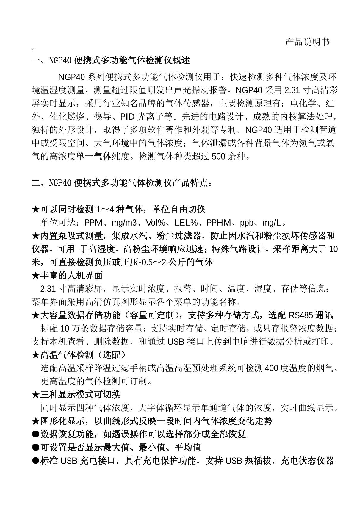 GaoPin NGP40-60 Gas Detector Manual,OI