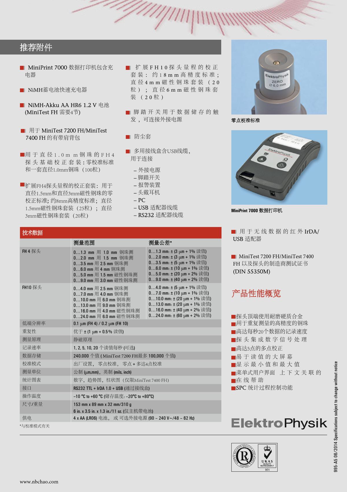 ElektroPhysik MiniTest 7400 FH4 Wall Thickness Gauge host brochure