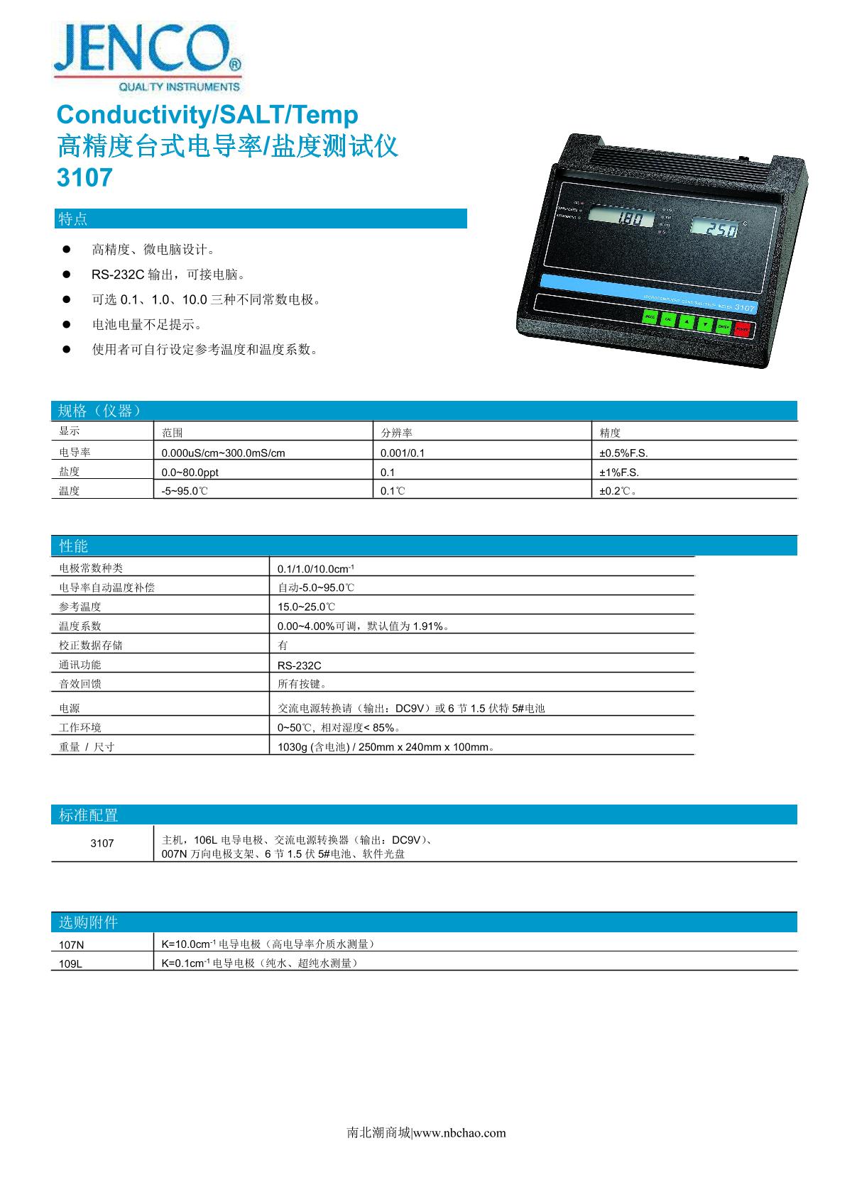 JENCO 3107 High accuracy Conductivity Meter brochure