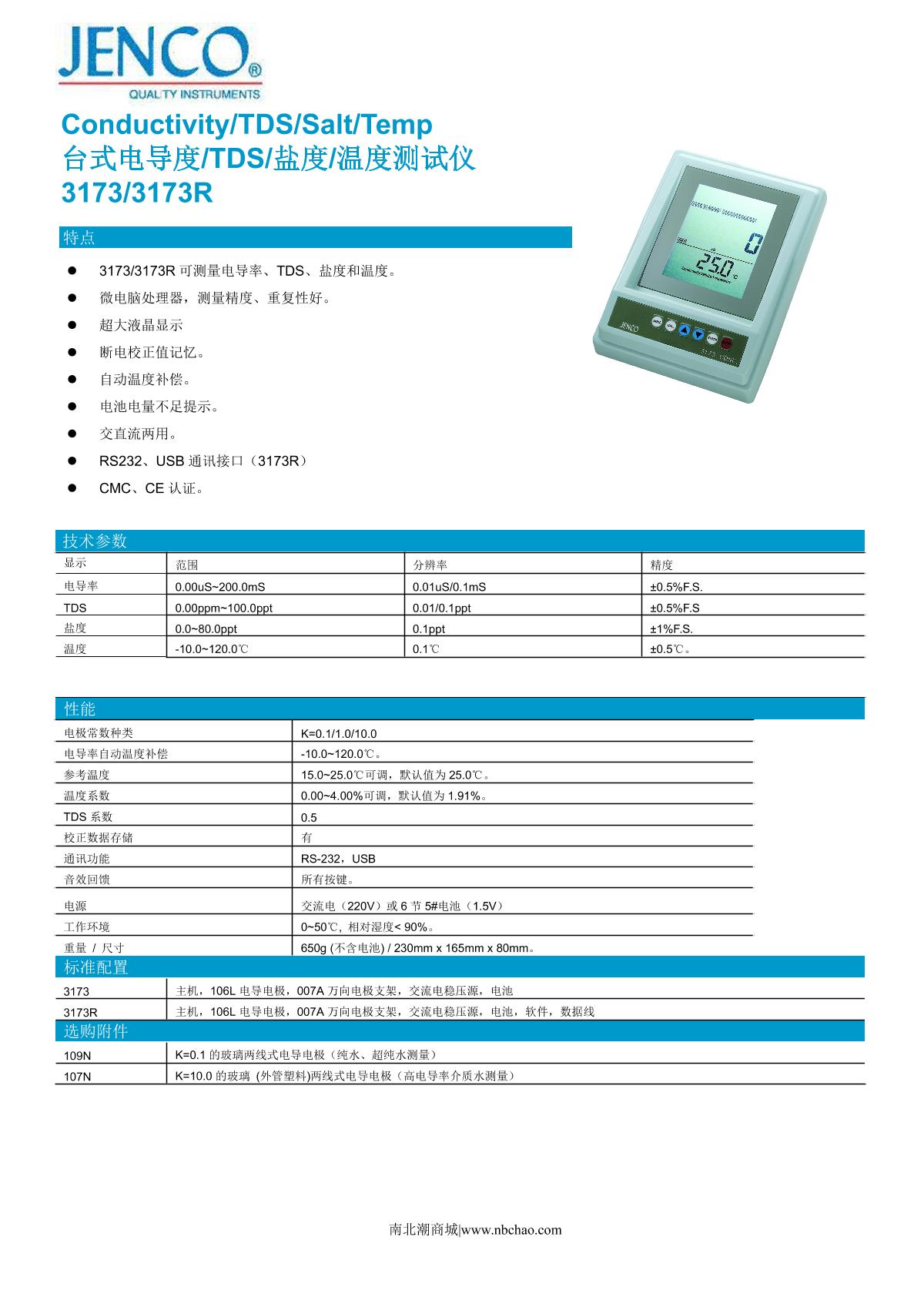 - 7JENCO 9250M Portable Dissolved Oxygen Meter brochure