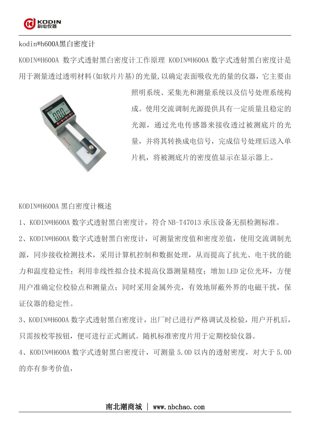 KODIN KODIN®H600A Black and white densitometer brochure