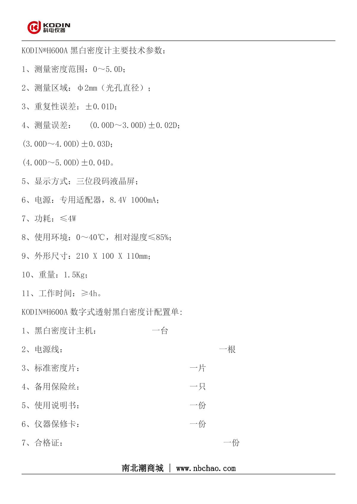 - 3KODIN KODIN®H600A Black and white densitometer brochure