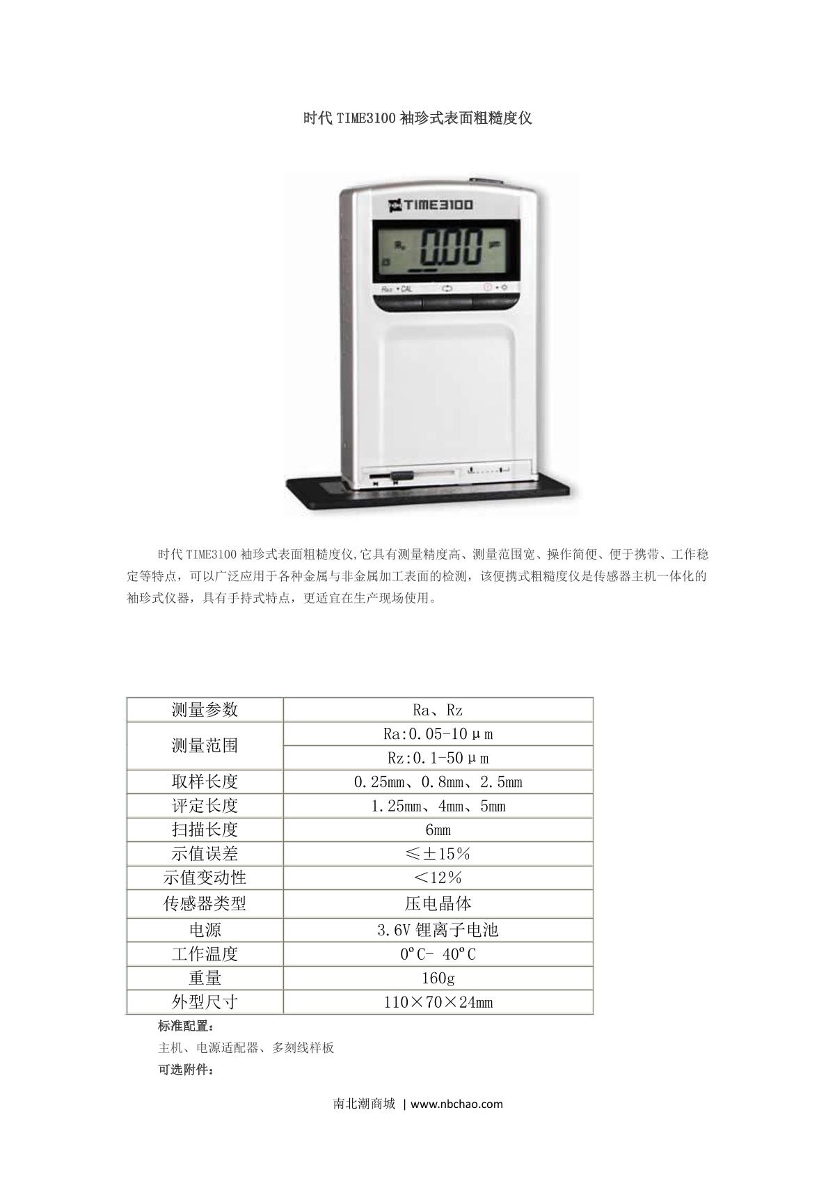 TIME TIME3100 Pocket surface roughness meter Manual,OI