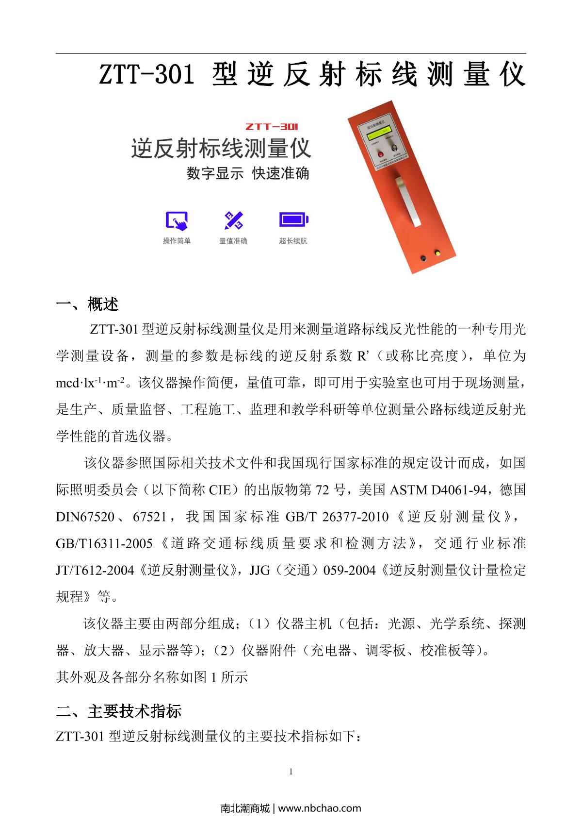 - 3TianDiXingHuo ZTT-301 Reverse reflection marking Measurement Instrument brochure