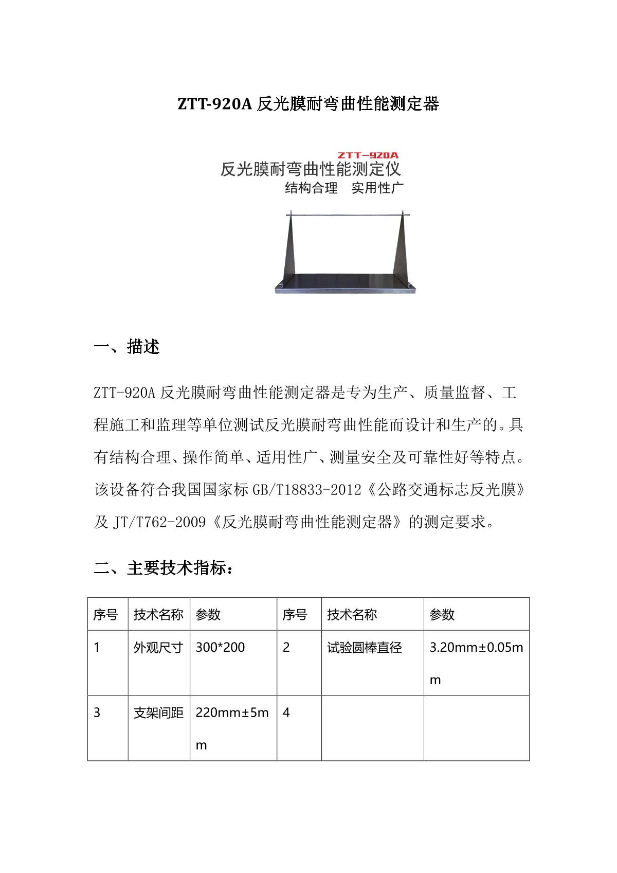 TianDiXingHuo ZTT-920A Reflective film bending performance Tester brochure