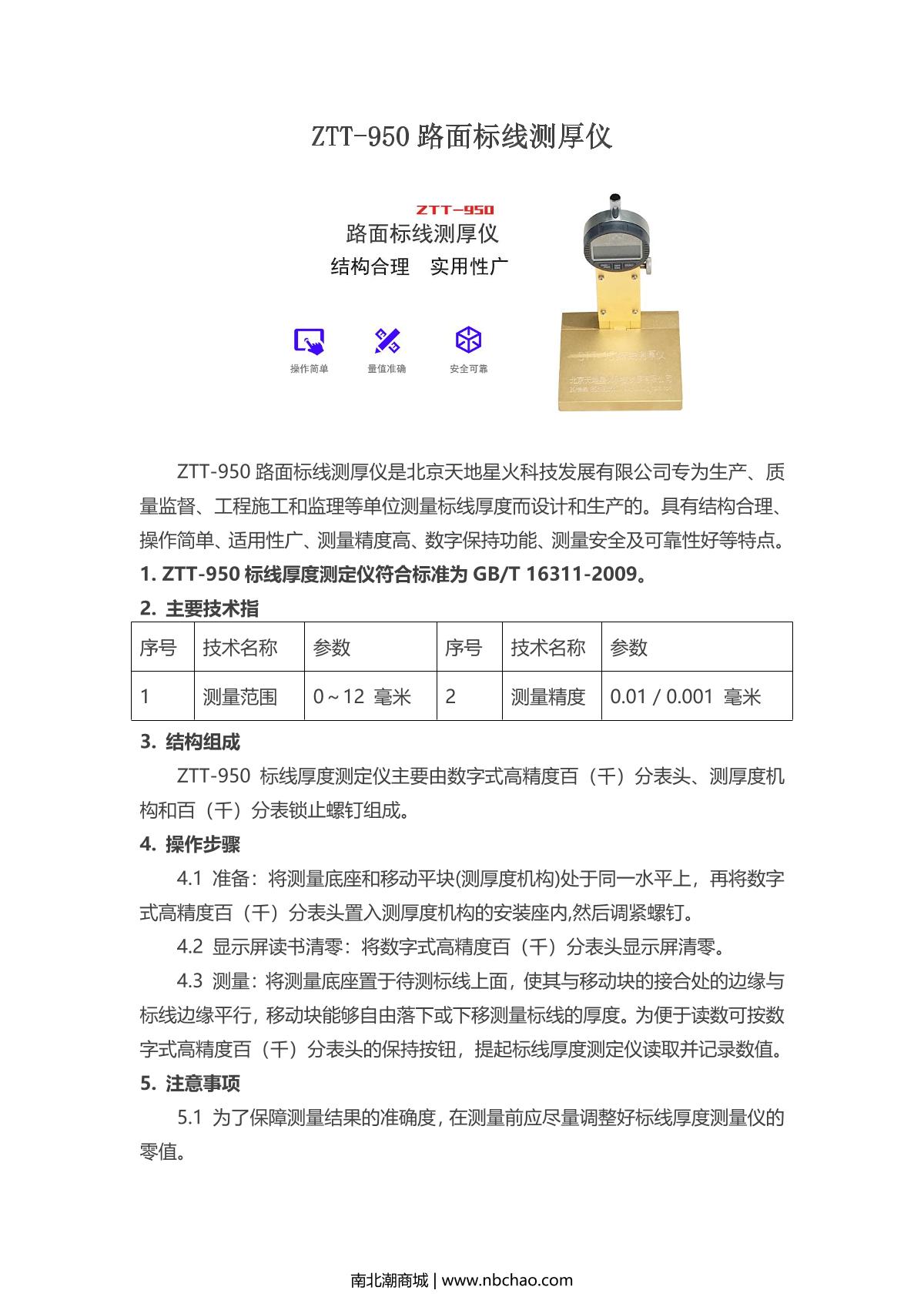 TianDiXingHuo ZTT-950 Pavement marking line Thickness Gauge brochure