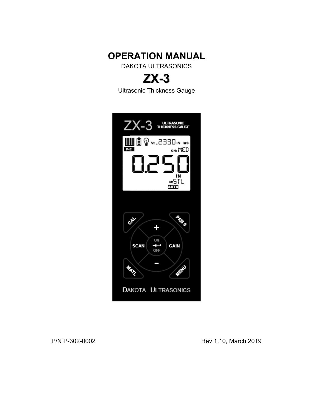 - 10DAKOTA ZX-6 Ultrasonic Thickness Gauge Manual