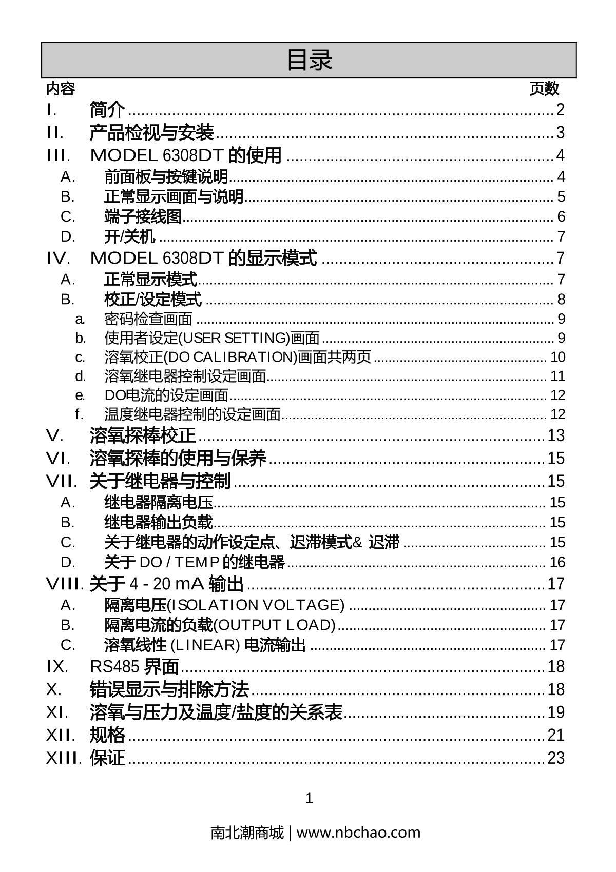 JENCO 6308DT Dissolved oxygen (DO) temperature controller Manual,OI