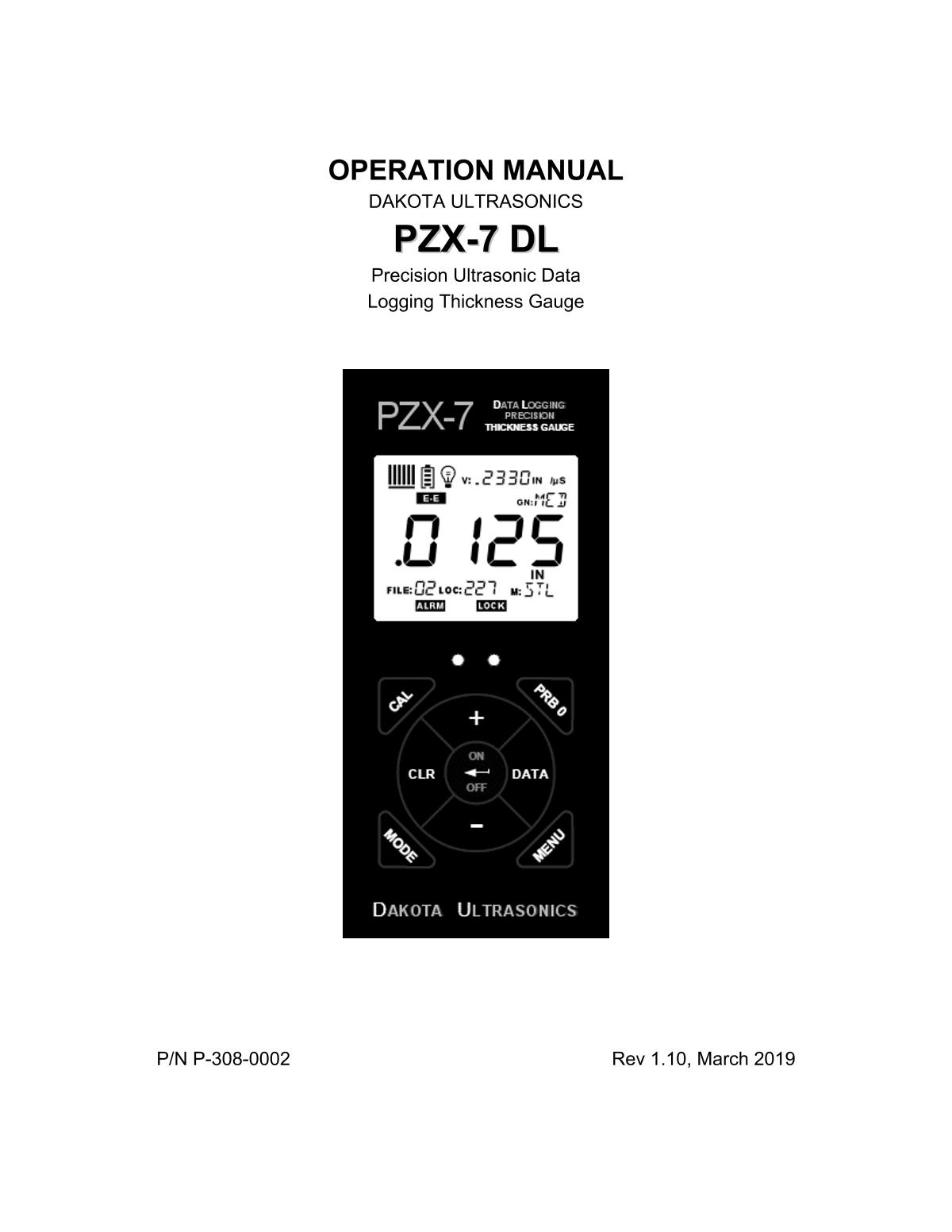 DAKOTA PZX-7DL High Precision Ultrasonic Thickness Gauge Manual,OI