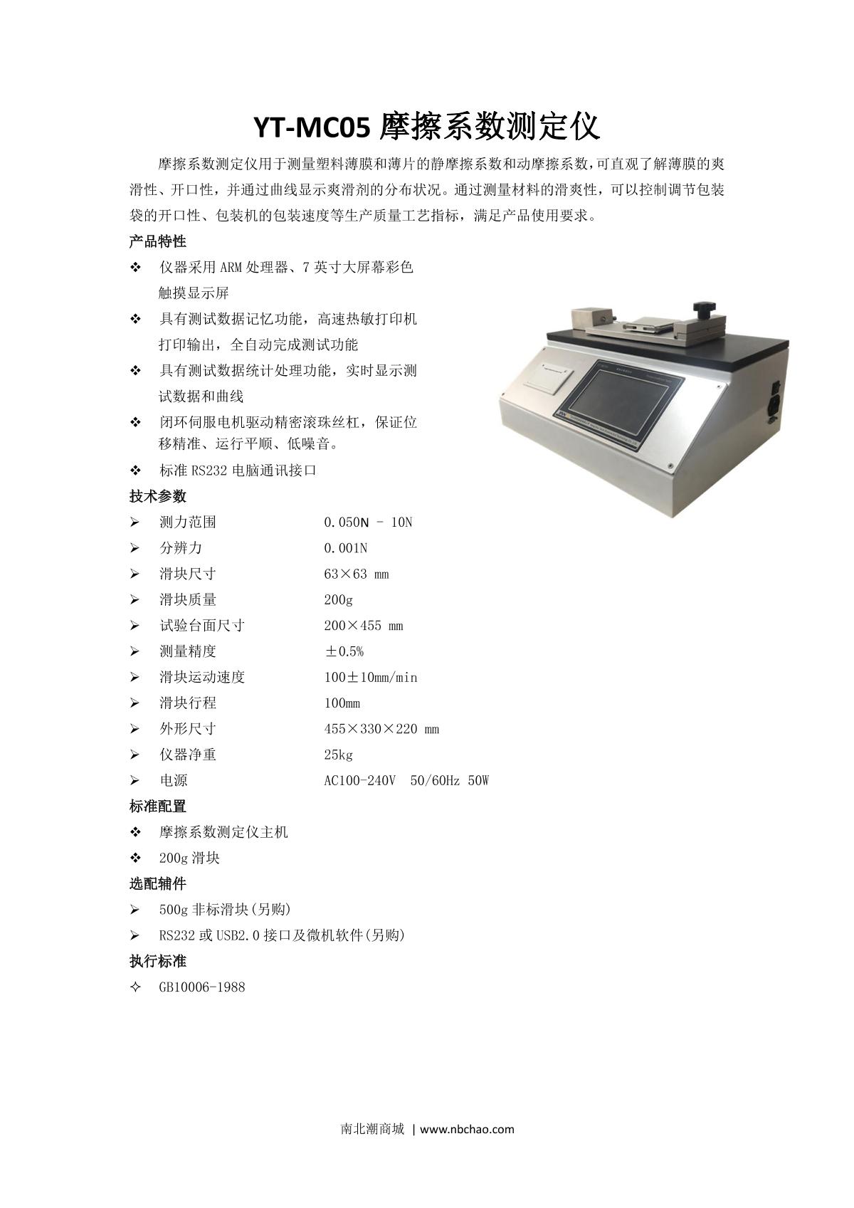 YanTe YT-MC05 Coefficient of frictIon Meter brochure