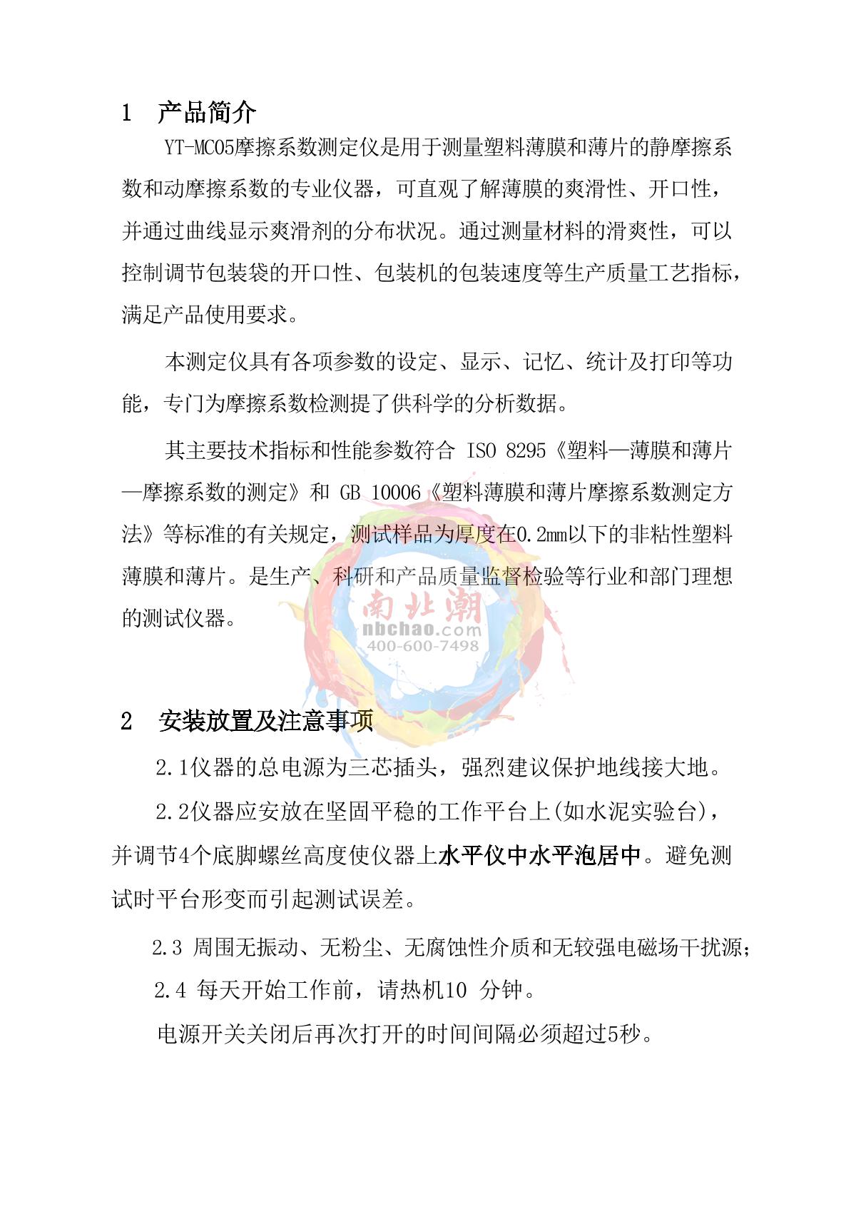YanTe YT-MC05 Coefficient of frictIon Meter Manual,OI