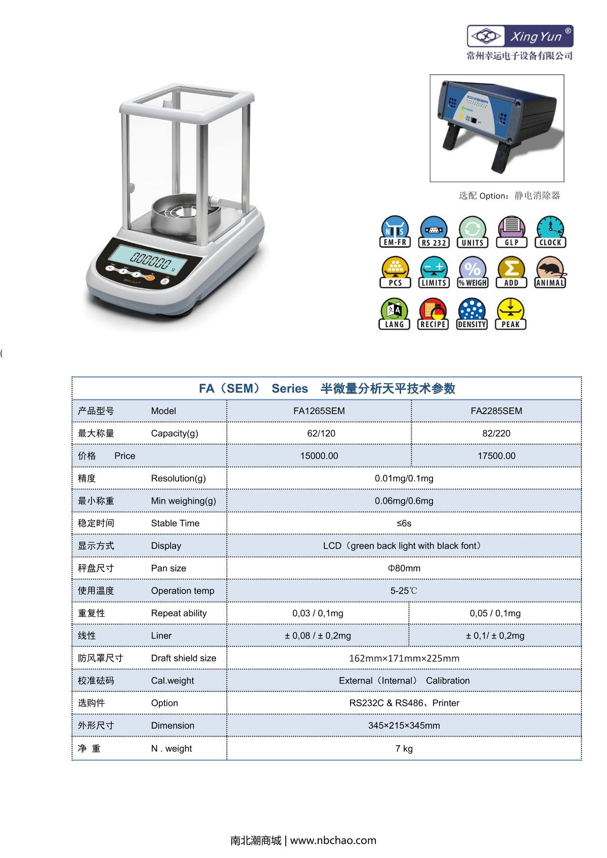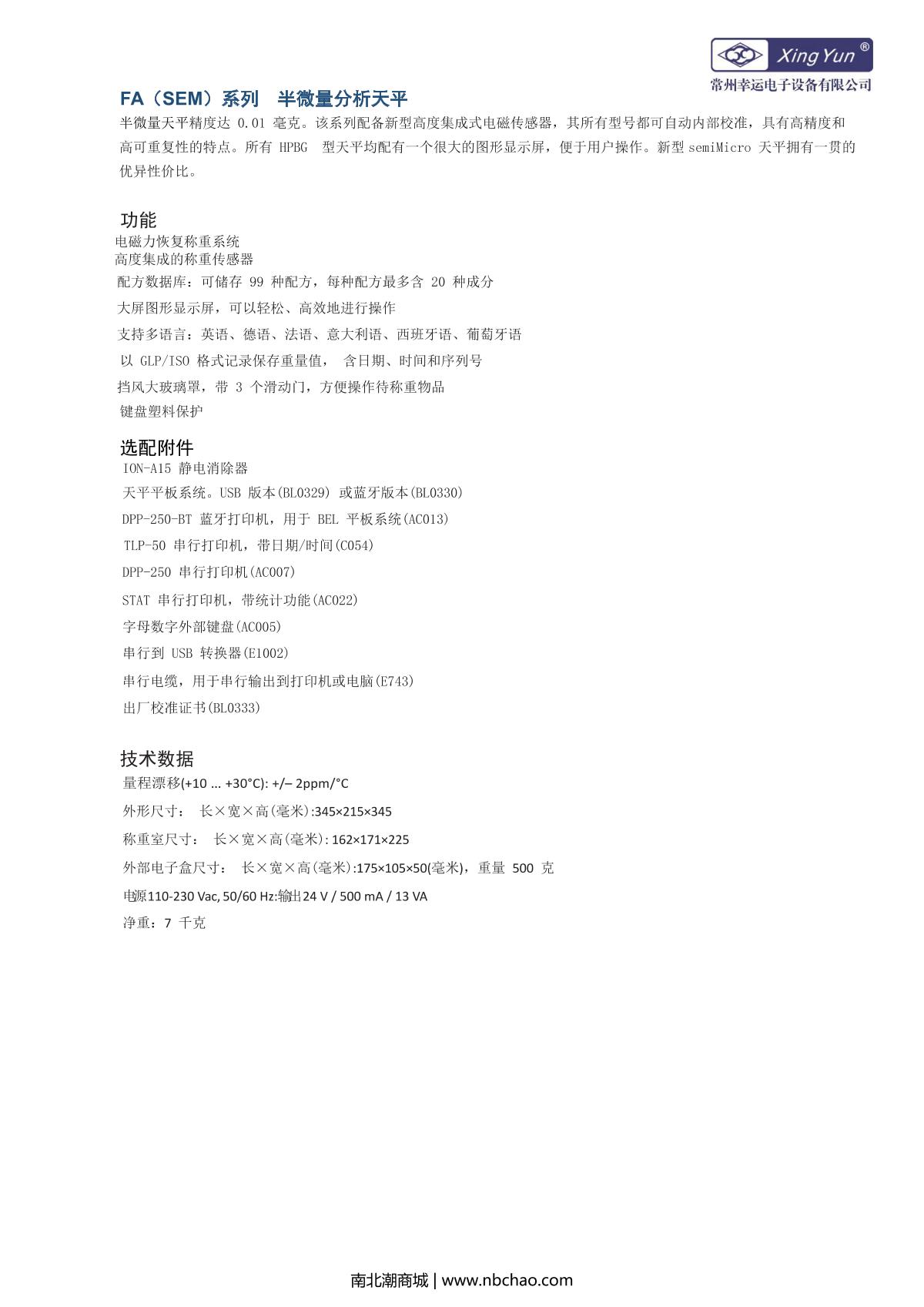 XingYun FA2285SEM Semi-micro analytical balance brochure
