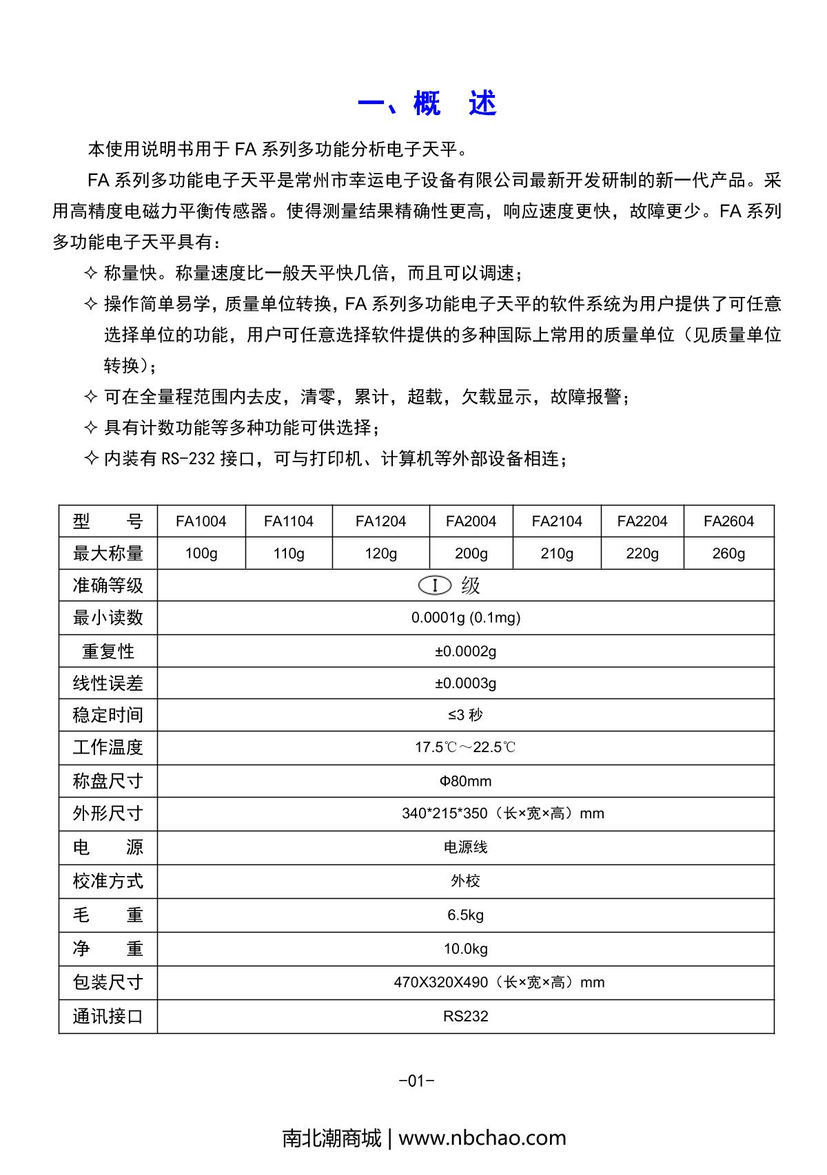 XingYun FA1004 Electronic Balance analysis Manual,OI