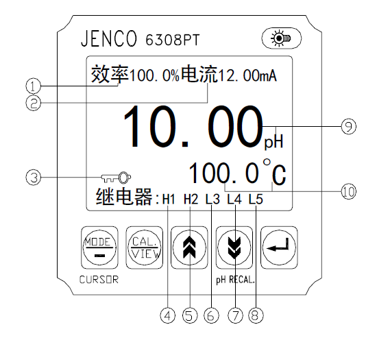 (6) L3: Indicator signal - when the indicator signal of L3 is on, it means that the pH value of RELAY3 has been loweredThe setpoint of the control.
