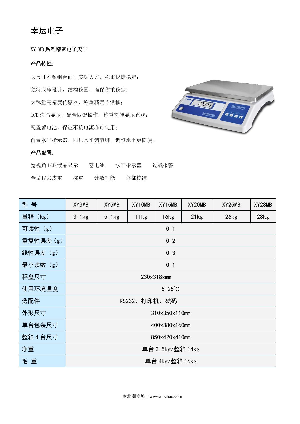 XingYun XY10MB Precision Electronic Bench Scale brochure