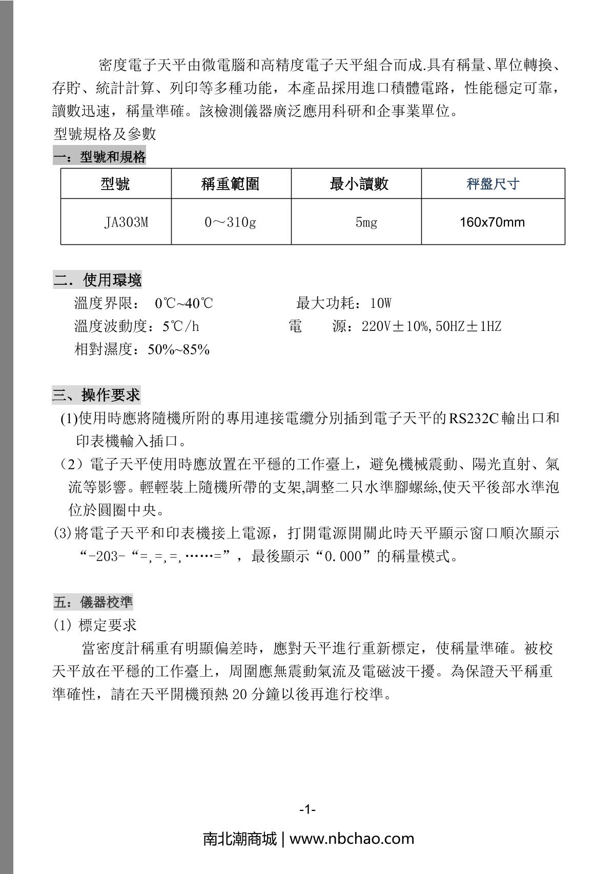 XingYun JA303M Density balance Manual,OI