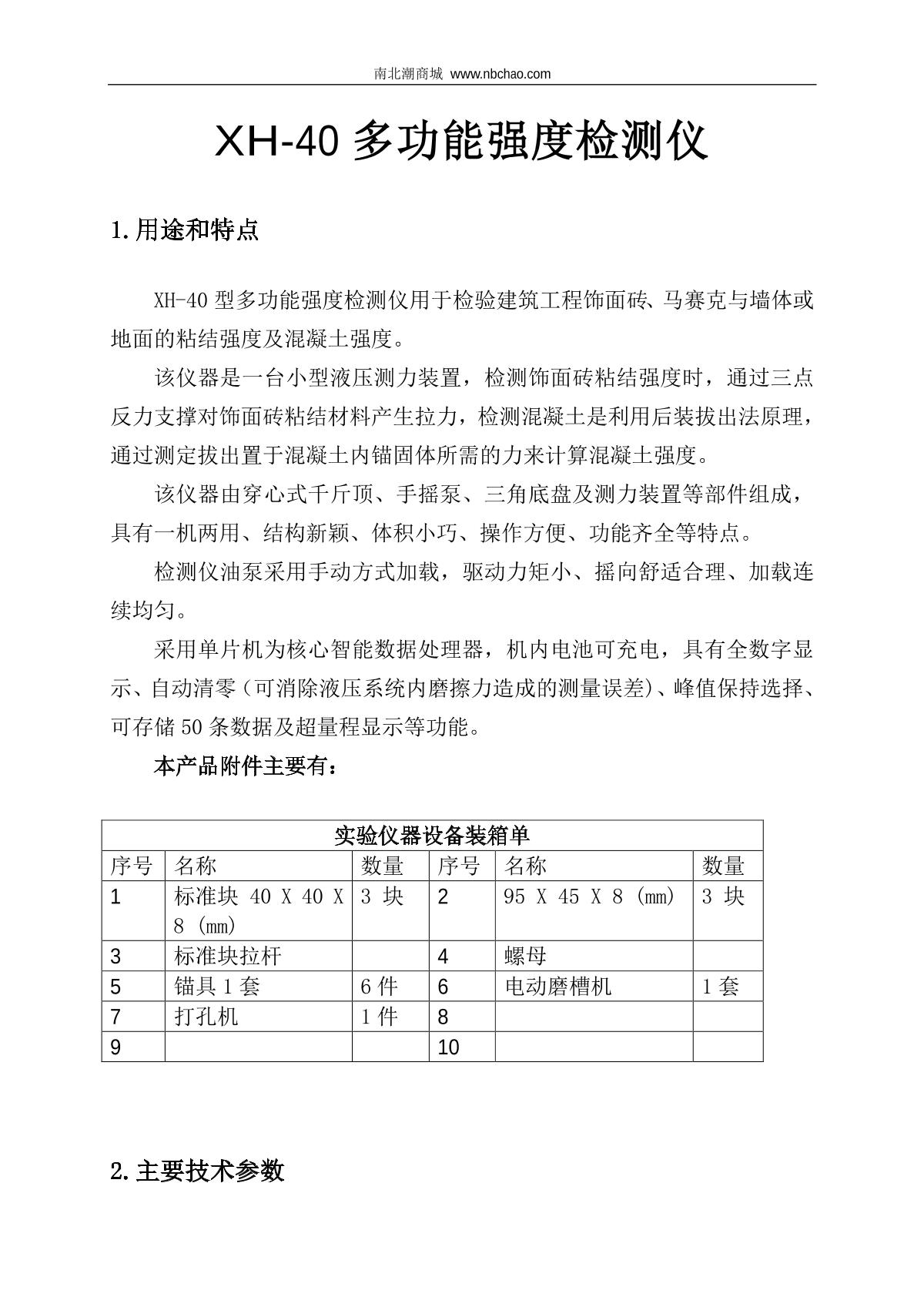 - 1TianDiXingHuo XH-40S Intelligent Multifunctional Strength Tester brochure