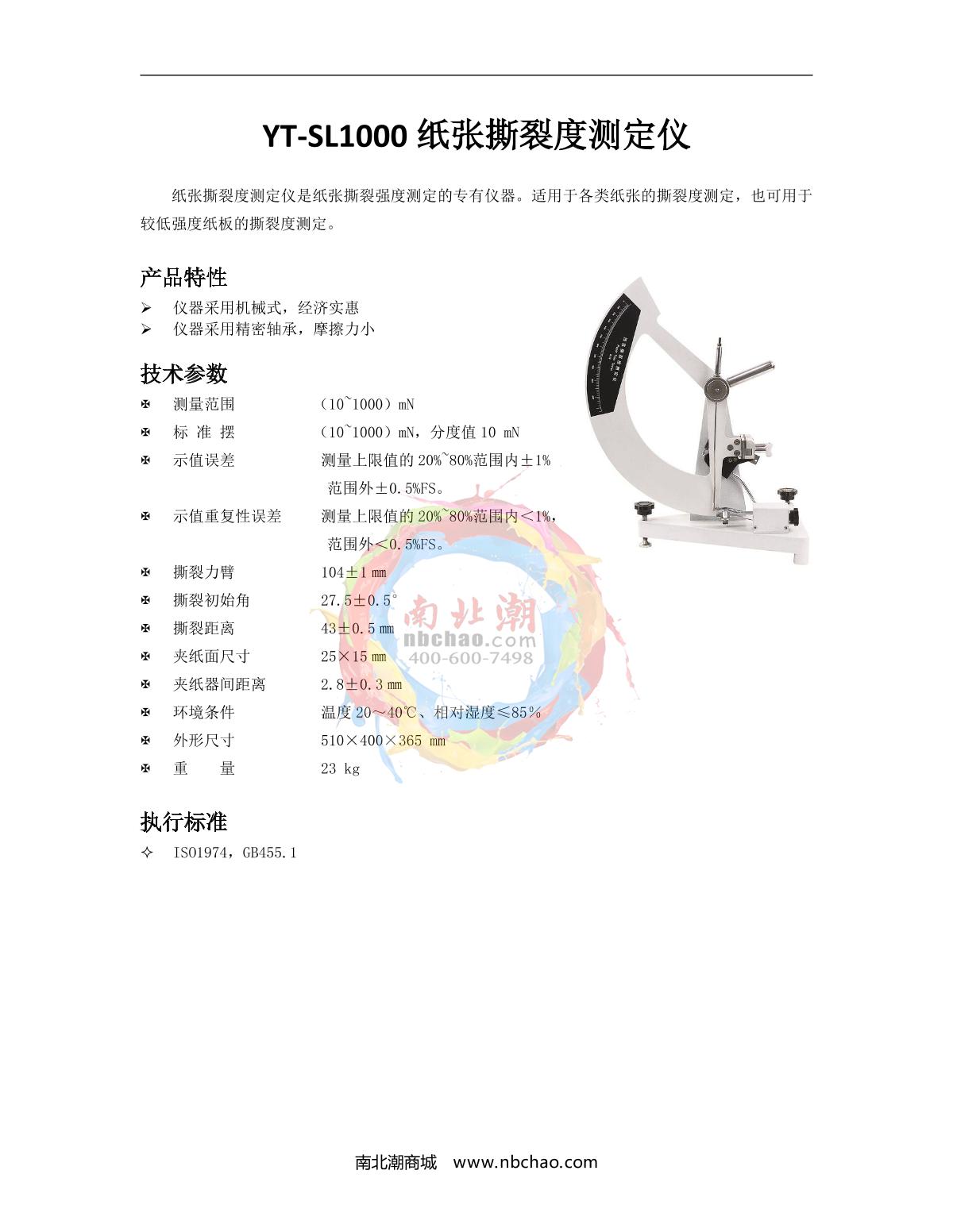 YanTe YT-SL1000 Paper tearing meter brochure