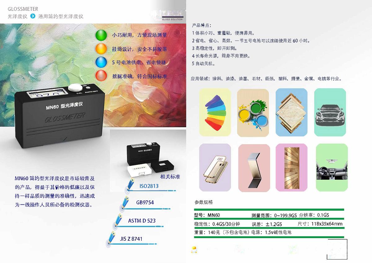 QILI MN60 Portable Glossmeter Universal, Single Angle Glossiness Meter60°0~199.9GU10*20mm¥1800.0SE -