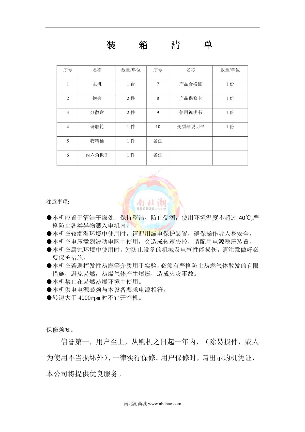 - 10Moderner SFJ-750 (AC frequency conversion) Sanding, Dispersion, Stirring Multipurpose Machine (AC Frequency Converter) Manual