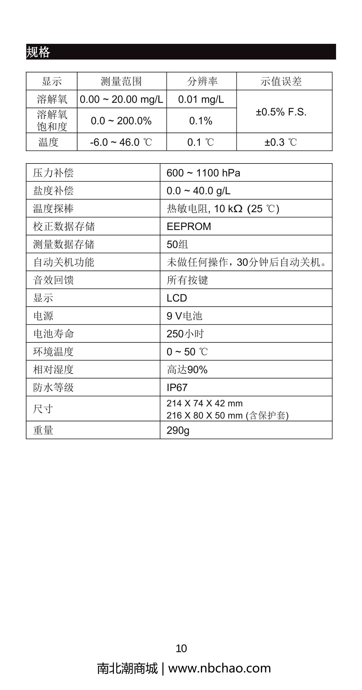 SMART SENSOR AR8406 Dissolved Oxygen Meter dissolved oxygen measurement meter split Dissolved Oxygen Meter0.0~30.0mg/L0.1mg/L±3.0%FS¥1239.0SE -