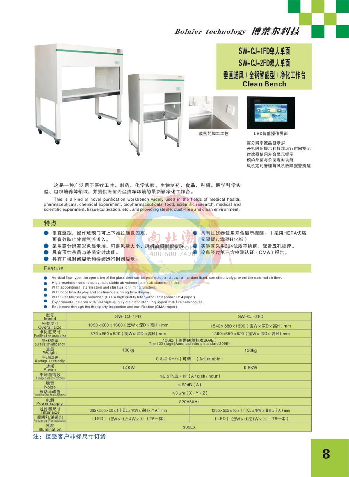 BOLEL PURIFICATION EQUIPMENT SW-CJ-2FD Single-Sided, Dual Operator vertical superclean bench (all steel intelligent)1540*680*1600mm1360*650*520mmLevel 100 (LIANBANG 209E)¥6710.0SE -